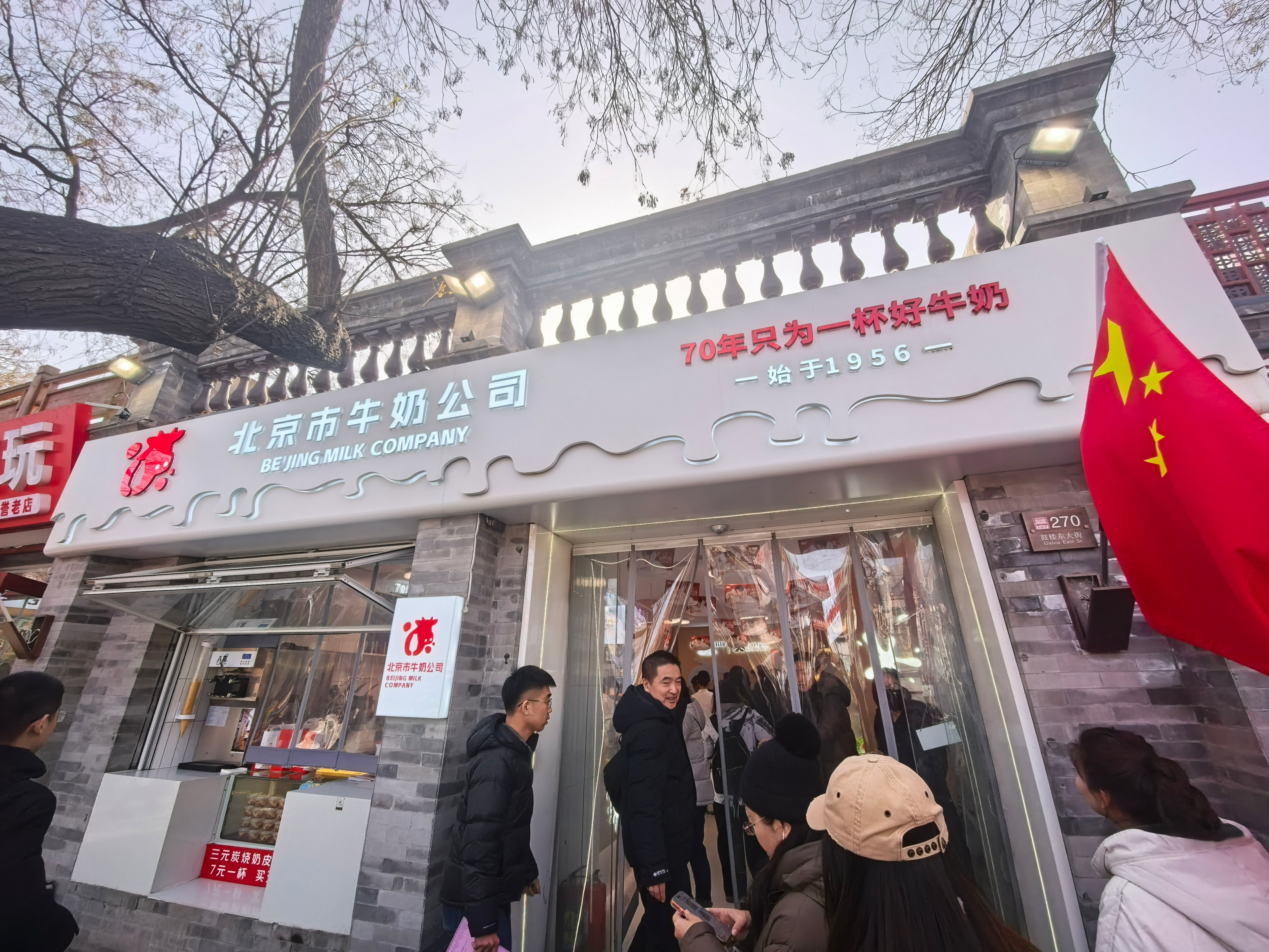 几十年前的“打奶”生活场景重现,不只是想让老顾客重拾美好回忆。三元食品公司党委书记、董事陈一说,三元食品公司的前身是1956年成立的国营北京市牛奶站,后更名为北京市牛奶公司。现在重启“北京市牛奶公司”IP,更希望让老字号牛奶通过这种现打鲜奶的门店,与更多来往北京的游客和年轻的消费者“交个朋友”。