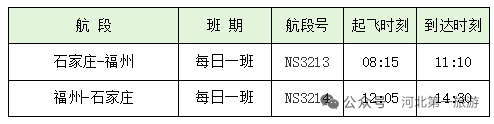 石家庄-福州:加强至福建省会的空中连接,满足两地商务、探亲及经由福州中转至周边地区的旅客需求。