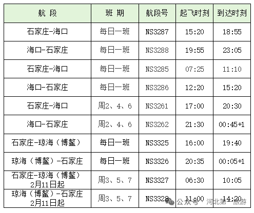 石家庄-海口、石家庄-琼海:围绕海南旅游热,方便旅客直达海南东部,为旅客提供更丰富的海南游选择。