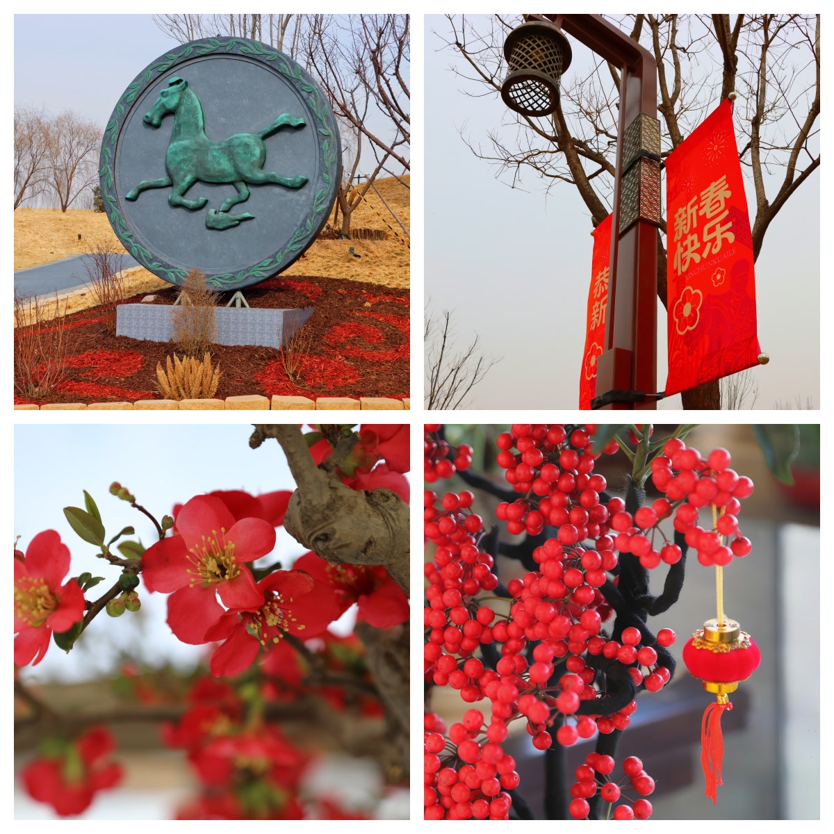 马年春节的脚步越来越近,路县故城早已换上 “汉风新装”—— 朱红挂满故城,汉代纹样装饰点缀,博物馆内还有汉风年宵花、岁朝清供场景,连空气里都飘着年味儿。
