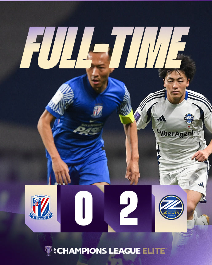 申花队今晚主场迎战町田泽维亚队。上半场,金顺凯开场30秒送点,相马勇纪点射破门。下半场,薛庆浩险些失误送礼;尾声阶段相马勇纪完成双响。最终,申花队0比2不敌町田泽维亚,遭遇亚冠4连败,并提前一轮无缘东亚区8强。
