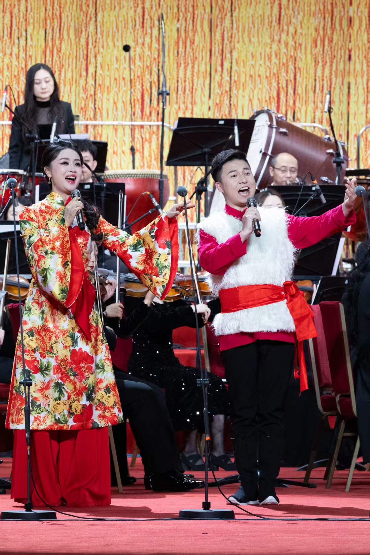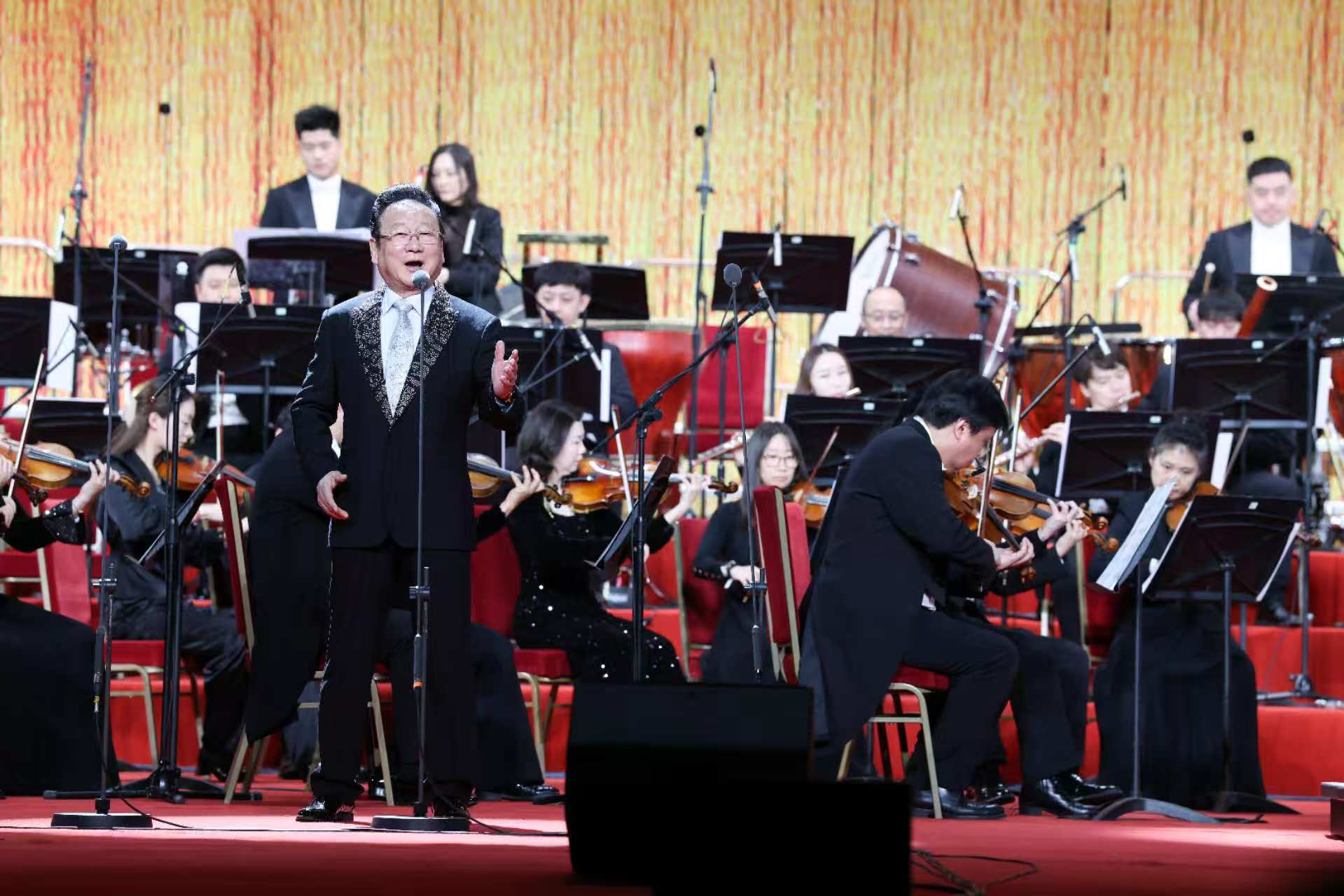 满场欢声笑语随中国电影乐团演奏家登台而渐渐平息。著名指挥家谭利华上场,热烈温暖的保留曲目《春节序曲》为音乐会正式开场。接下来,延续一贯的“乡情篇”“亲情篇”“友情篇”“幸福篇”的篇章策划,众多歌唱家轮番登台,以民族、美声、通俗、原生态等多元唱法带来了20余首风格各异的中国歌曲,铺展开神州大地斑斓多彩的音乐地图:冯金伟、黄艳亮出金嗓子,在山西民歌《拜大年》中对唱出满堂喜气;蒙古族歌手阿古达木献唱《雕花的马鞍》,歌声苍劲,似草原辽远;彝族歌手曲比阿乌倾诉《情深谊长》,婉转悠扬;青年歌手刘迪与来自马来西亚、俄罗斯等多个国家的留学生同唱全新编配的《我和你+茉莉花》,这一刻,同样的旋律连接起不同的文化,传递着友谊与和平。