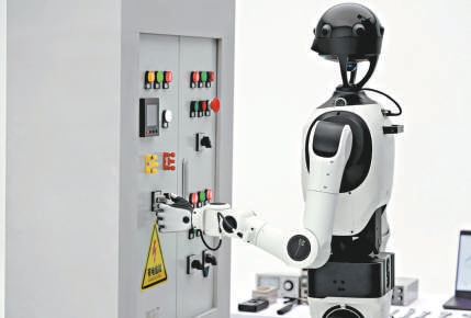 单手翻越一米高的障碍物、在崎岖地面上灵活作业、精准拨动旋钮……昨天,北京人形机器人创新中心发布新一代通用机器人平台具身天工3.0,这也是行业内首个实现触物交互式全身高动态运动控制的全尺寸人形机器人。