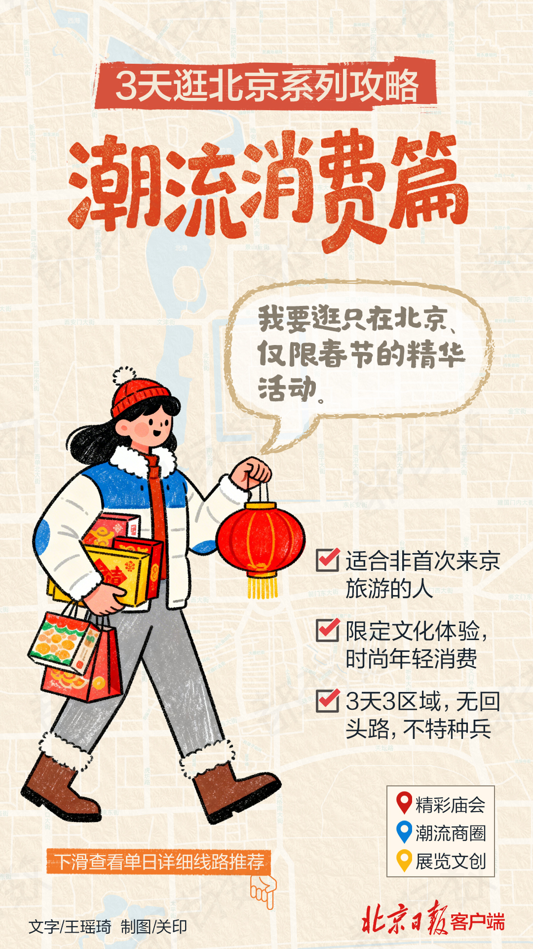 想告别传统古迹打卡,一头扎进北京的潮流文艺圈儿吗?您点开这篇攻略就对了!我们为您整理了不走回头路,沿途逛庙会、看展览、玩非遗、买文创的旅游路线图——