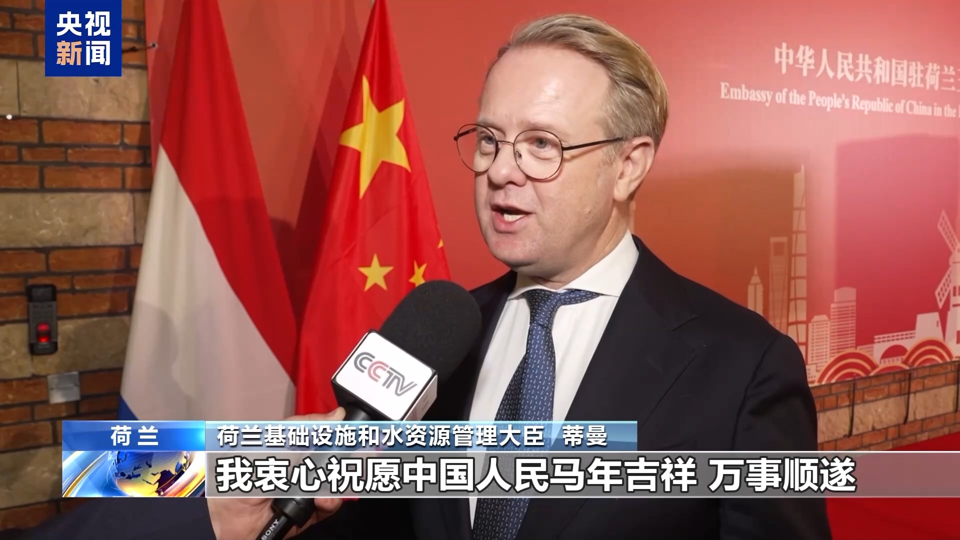 荷兰基础设施和水资源管理大臣 蒂曼:我衷心祝愿中国人民马年吉祥,万事顺遂。