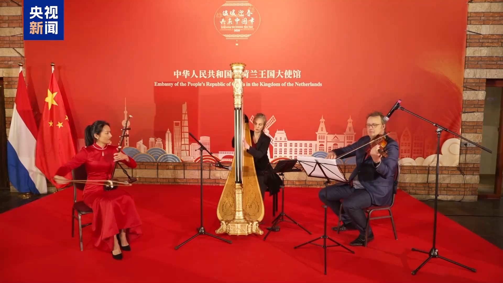 包括荷兰基础设施与水资源管理大臣蒂曼、禁止化学武器组织总干事阿里亚斯在内的近500名嘉宾出席了中国驻荷兰使馆举行的新春招待会。中荷两国艺术家联袂呈现精彩的文艺节目。