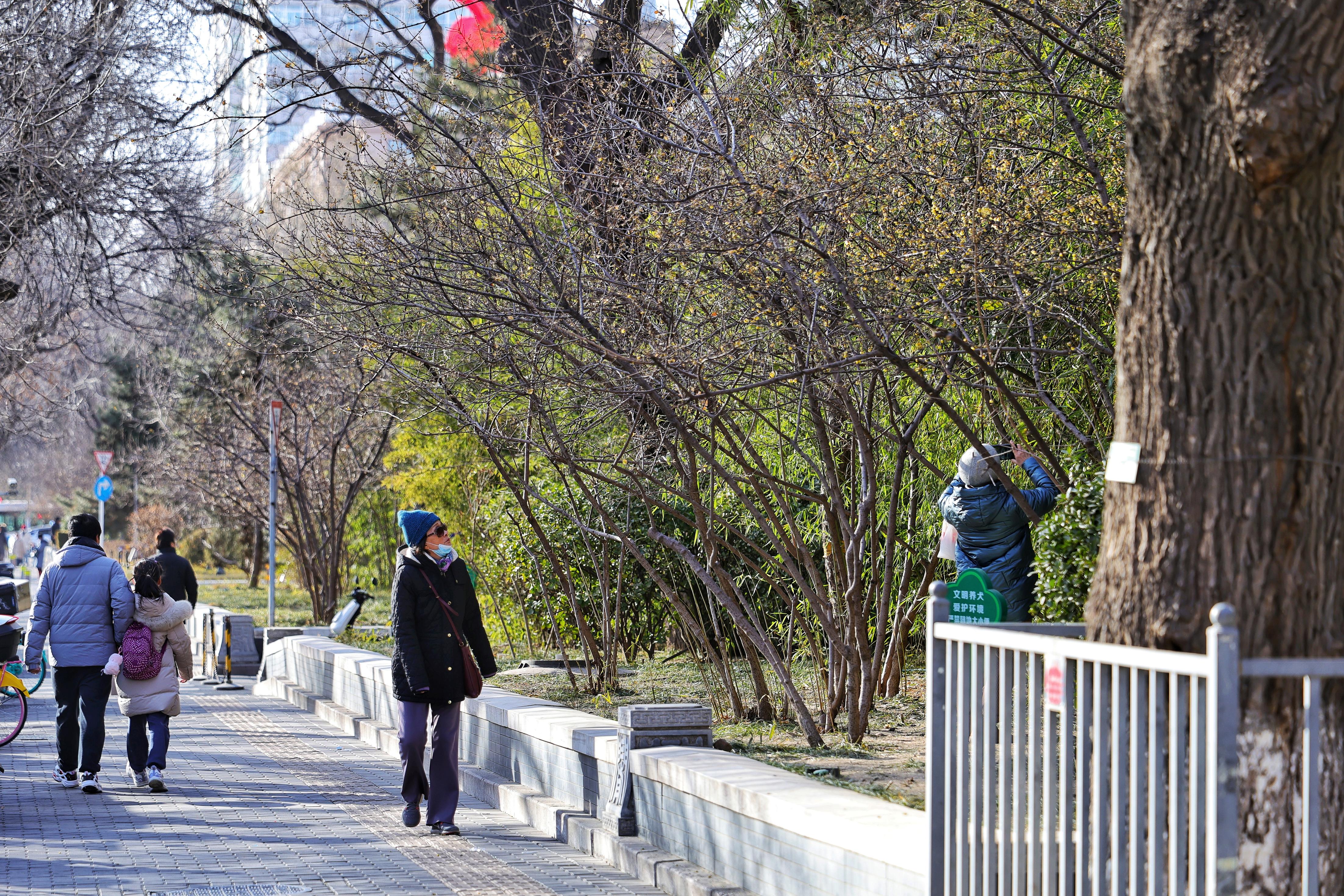 金黄花簇缀满枝头,清冽幽香萦绕街巷,为冬日的东城添上一抹灵动春意。
