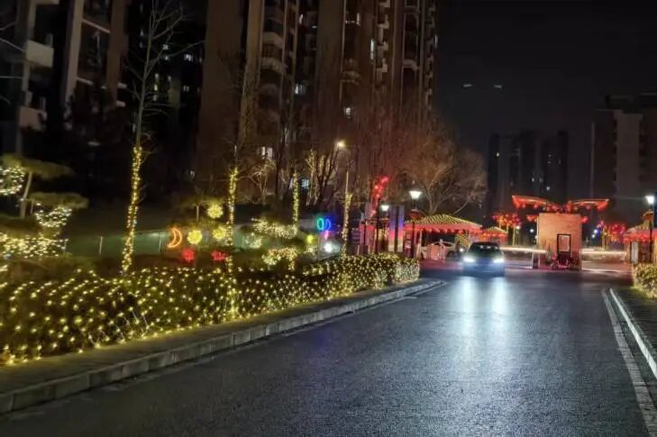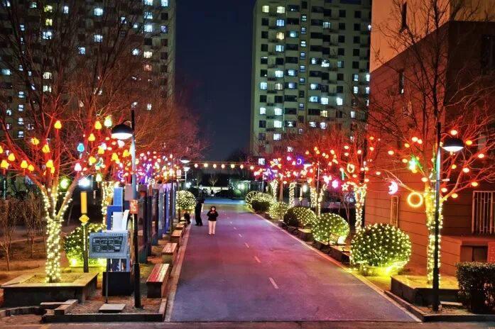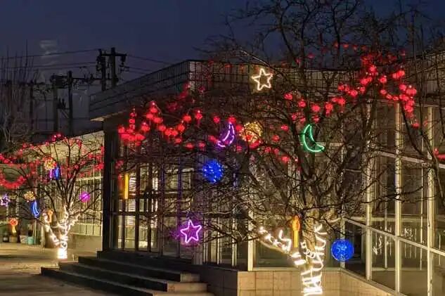 今年,金盏乡的春节景观亮化范围覆盖金盏大街、东苇路等主干道路,并延伸至各社区(村)的每一个角落,让年味走进街头巷尾、融入百姓生活。