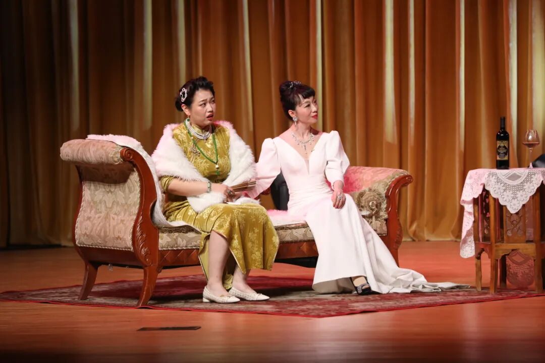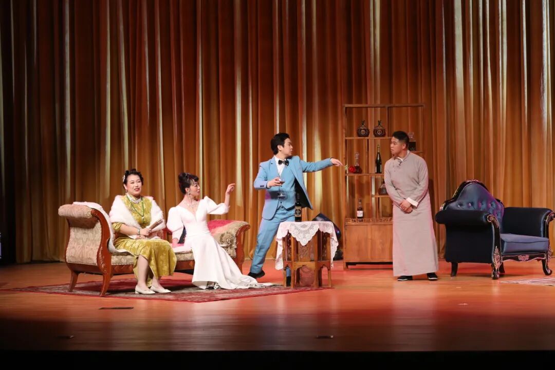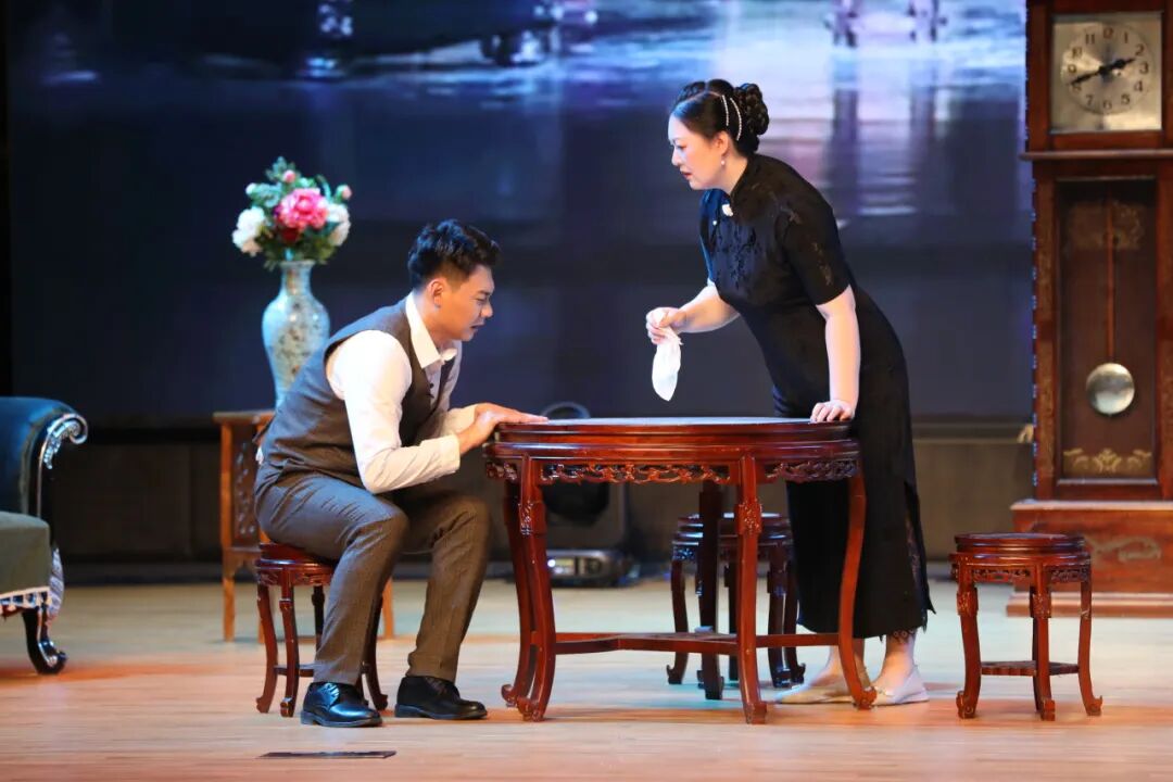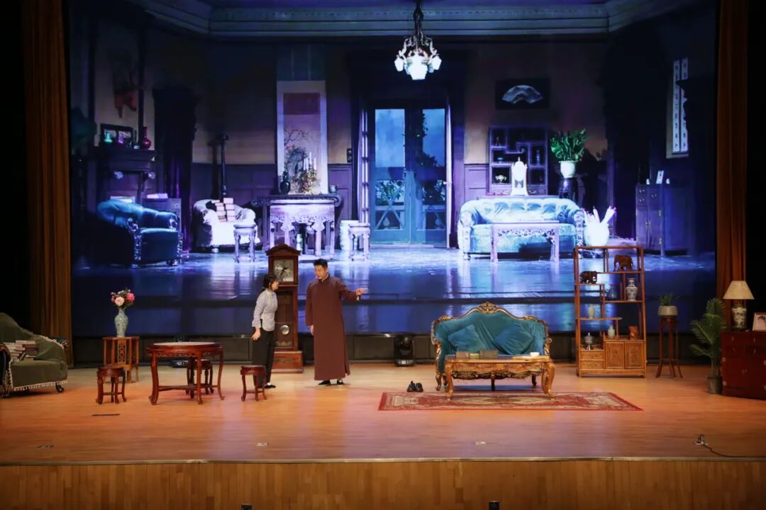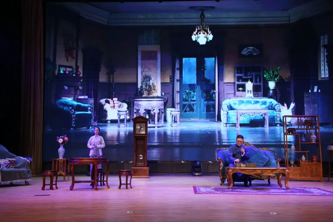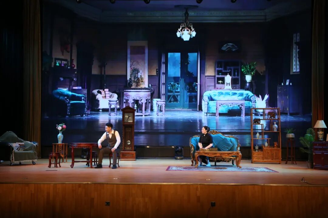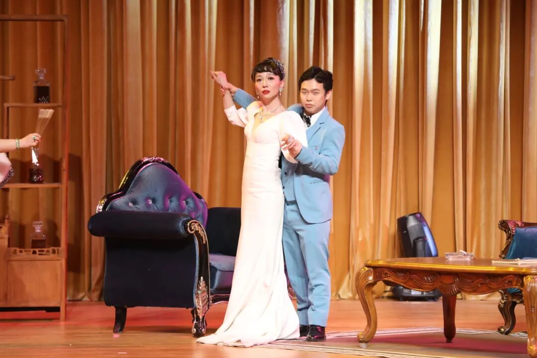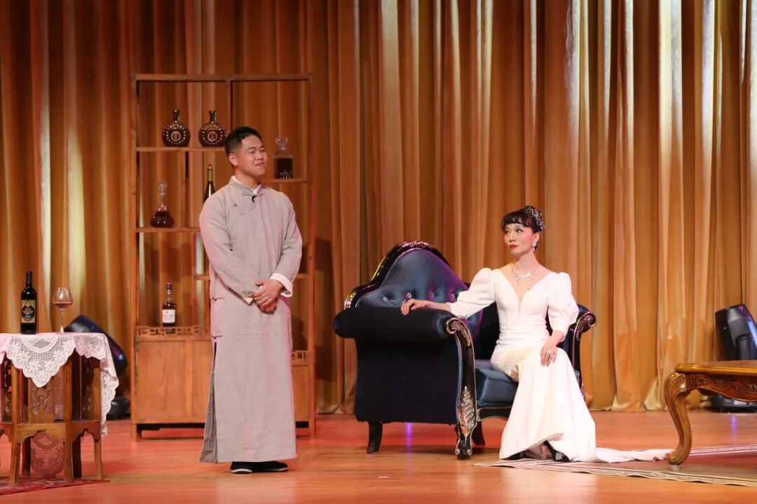 紧接着,观众的目光被引向曹禺另一幅社会画卷——《日出》。场景移至繁华都市的旅馆套房,顾八奶奶、陈白露、张乔治等人物在觥筹交错间高谈“爱情”,却句句不离金钱与虚荣。演员以细腻讥诮的表演,勾勒出一幅“乱花迷眼,金玉其外”的浮世绘。这场“没有爱情的爱情讨论会”,犀利揭露了在物欲横流的环境下,情感的异化与精神的荒芜,繁华表象难掩灵魂的漂泊无依。演员的传神演绎,让观众对经典作品批判现实的精神力量有了更深体会。