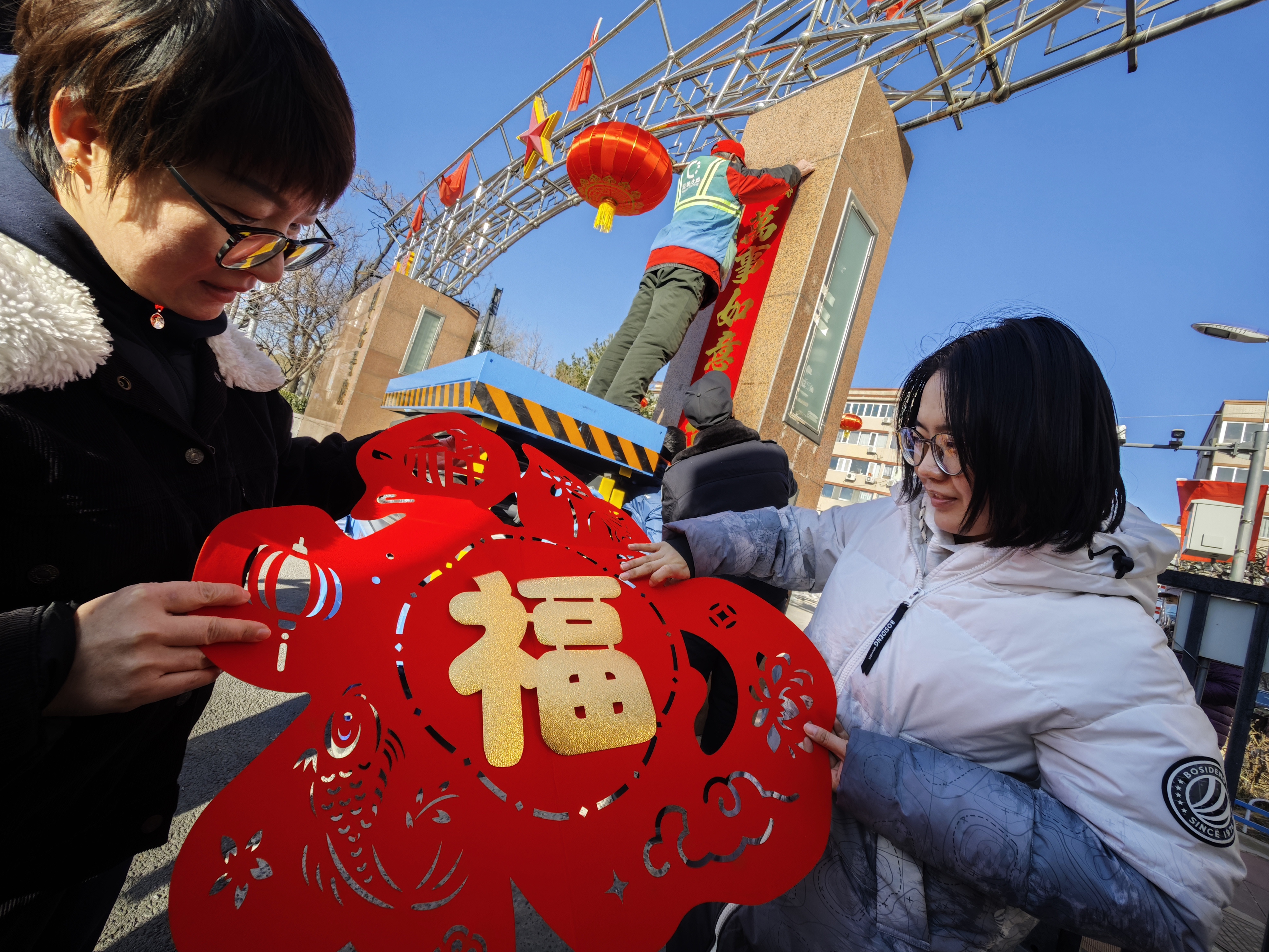 由妇联工作者和社区巧手居民组成的“氛围营造组”也忙碌起来。她们在社区的主要道路两旁、活动中心门口、花园廊架下,挂起了一串串大红灯笼和彩色灯带。几位阿姨将各式各样的窗花和“福”字,分发给各楼门张贴。经过一番装点,平日里素雅的社区披上了节日的盛装,处处可见中国红,步步能感喜庆情,浓浓的年味在社区弥漫开来。