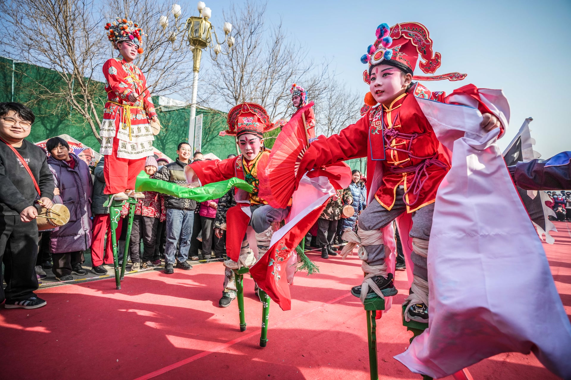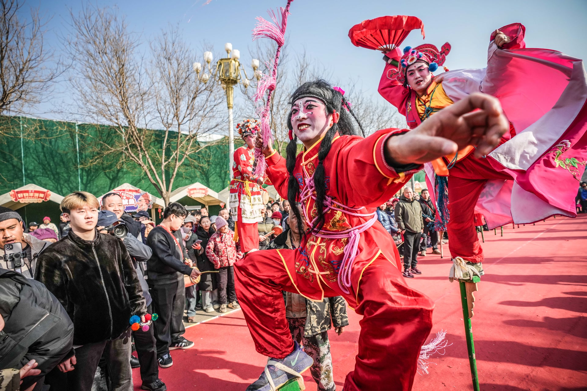 孩子们刻苦排练,只为新春隆重亮相。从正月初一到十五,履磕村高跷队将在周边乡村接连展演,与乡亲们共贺新春。高跷上的面孔岁岁更迭,不变的是浓郁年味、乡土温情,还有生生不息的非遗传承。