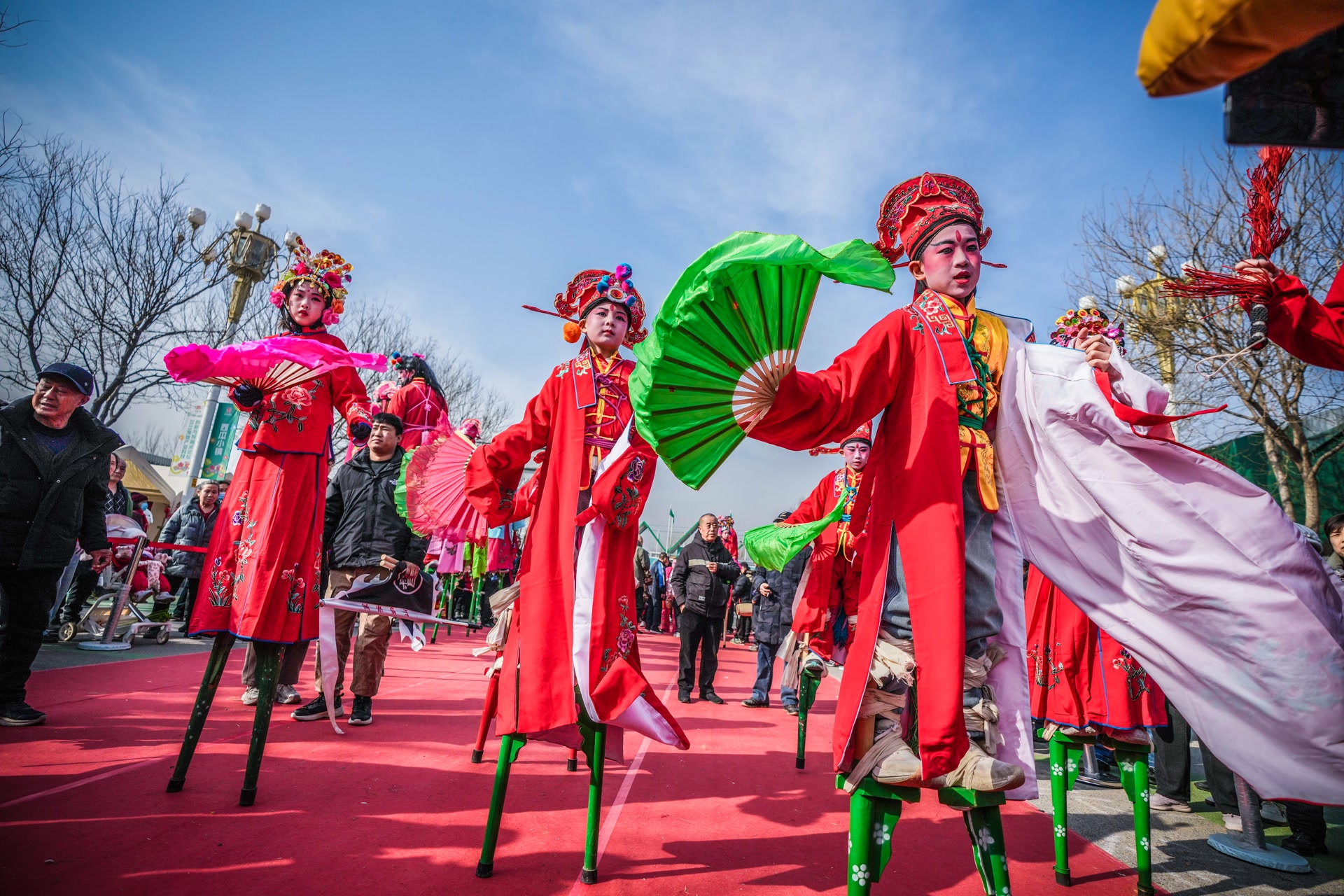 高跷表演看似热闹,实则功夫深厚。演员不仅要站得稳、走得顺,还要完成劈叉、背箭、鹞子翻身、高台飞跃等高难度动作,整套表演行云流水,总能引得观众阵阵喝彩。如今,从九旬老人到几岁孩童,这项古老技艺在村里代代相传。