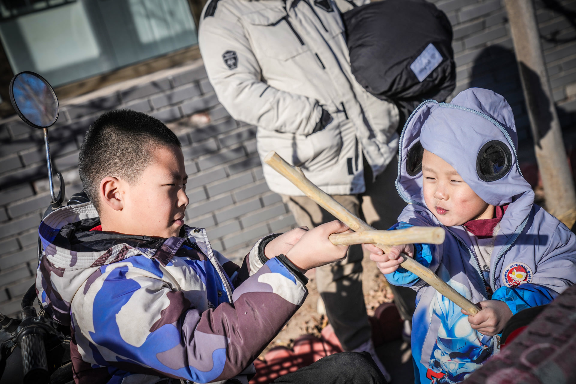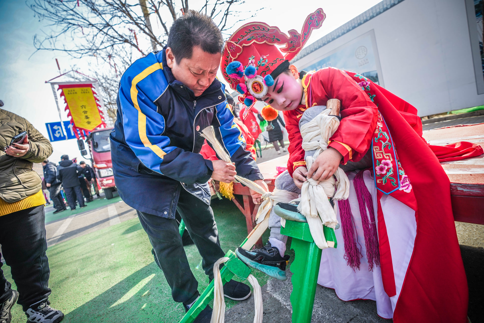锣鼓敲响,扮成小燕青、小武松的孩子们依次登场。踩着量身定做的小号高跷,孩子们身形利落、威风凛凛,成为冬日里一道鲜活风景。