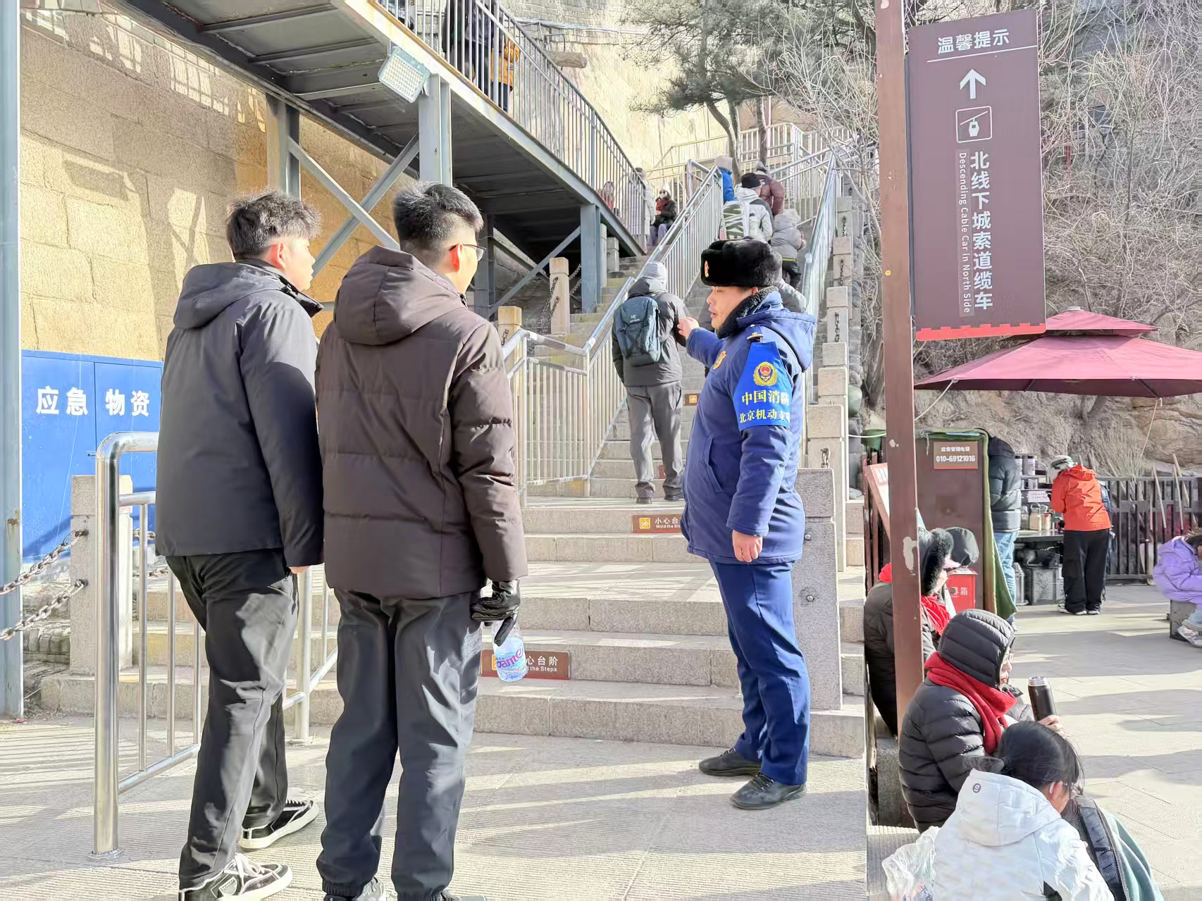 不久前,一名年迈游客在北8楼陡峭台阶上不慎摔倒,腰部受伤动弹不得。接到求助后,陈文豪带领4名消防员,携带担架、急救包火速攀登救援。“台阶窄、无护栏,担架放不平,我们就手抬肩扛,用腿顶住城砖稳住身体。”回忆当时场景,他仍心有余悸。寒风刮得人睁不开眼,汗水浸湿内衣,手上磨出了血泡,却没有一人松手,最终用40多分钟将老人安全转运下山。