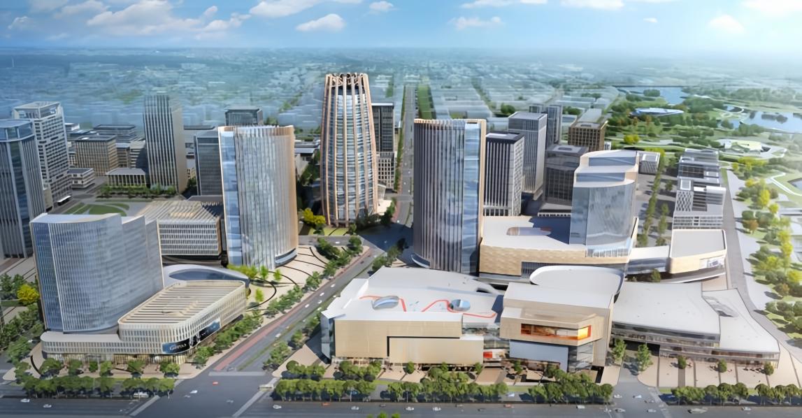 雄安国贸中心项目作为雄安新区启动区的核心地标,建筑面积约106万平方米,共9个建筑单体,是首个集与北京贯通的轨道交通、航空服务、办公、商业、酒店等复合功能为一体的雄安特色TOD项目,也是雄安新区打造“站城一体”模式的标杆工程。