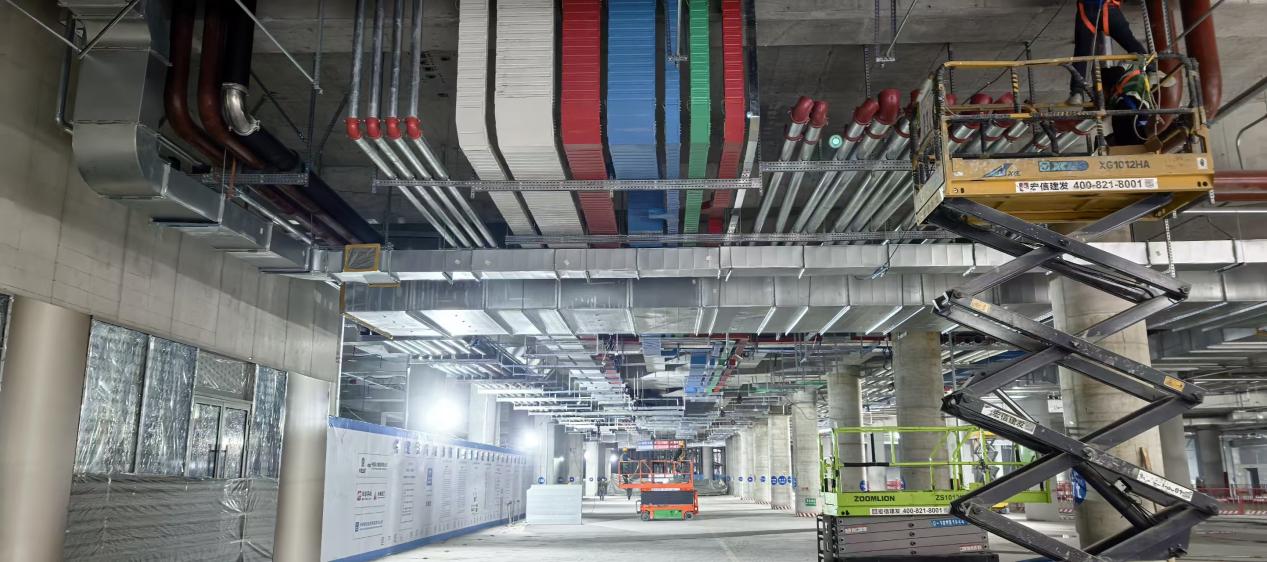除了在施工细节上精益求精,这群青年建设者更在科技创新上下功夫。“多专业交叉作业,管线错综复杂,二次配管工程量大、难点多,我们通过BIM技术对各专业进行正向深化设计,切实优化传统施工流程,为项目高效推进筑牢技术保障。”项目总工朱鹏说道。