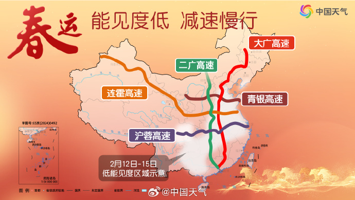 11日至14日,华北中南部、黄淮中部等地有轻度霾,局地中度霾。其中,13日夜间至14日早晨,河北东南部、天津、山东西部、河南南部、湖北中东部、湖南北部等地部分地区有大雾,局地有浓雾或强浓雾。正值春运高峰期,雾和霾使能见度降低,途经受影响高速路段的朋友要注意交通安全。