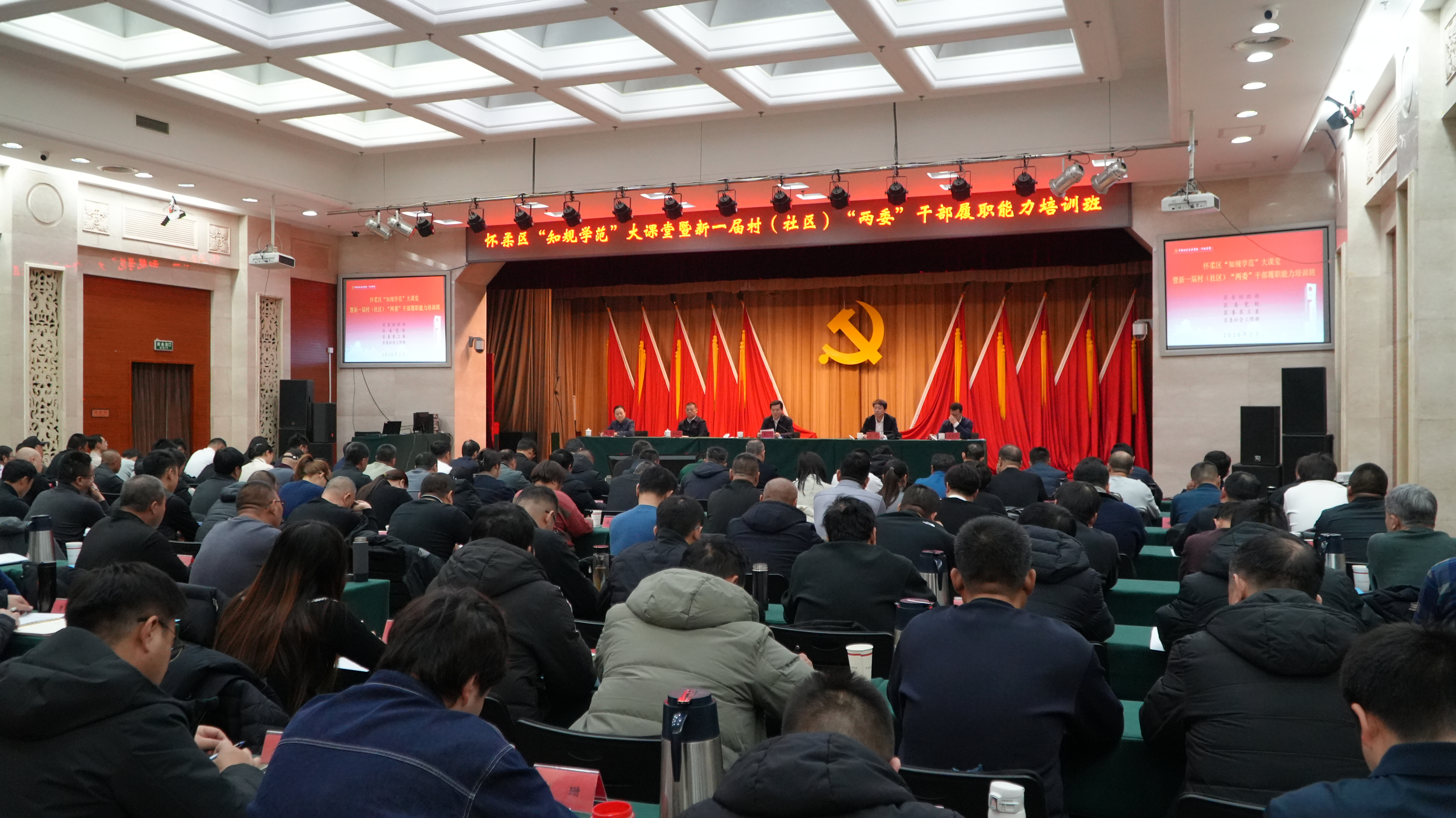 2月9日至10日,怀柔区举办 “知规学范” 大课堂暨新一届村(社区)“两委” 干部履职能力培训班。全区村(社区)“两委” 干部、乡镇街道相关负责人、驻村第一书记、选调生、乡村振兴协理员、党建助理员等共2300余人参训。