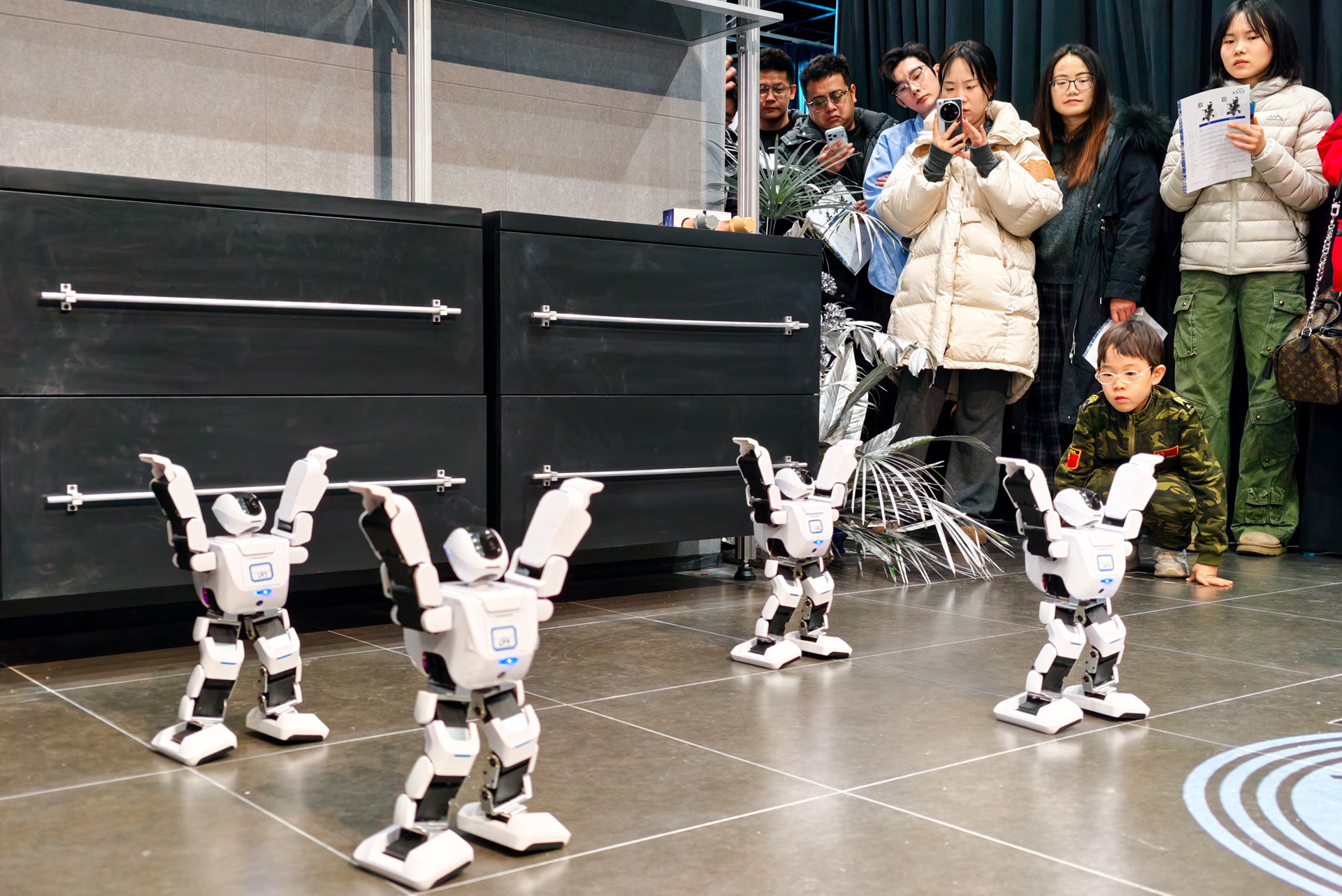 再向前行走,教育区的几台机器人开启一场热舞表演,技术人员表示,这些区域的机器人通过集中展示和实操演示,有助于缩短技术验证周期,提高应用落地效率。维修区内,几台机器人悬挂在空中,维修人员正在对它们进行“体检”和“手术”。“和汽车4S店一样,我们联合加速进化公司打造专属机器人的4S店。”维修人员介绍,机器人通常需要返厂维修,有了维修保养车间后,机器人可直接送到这里检修,流程更便捷。