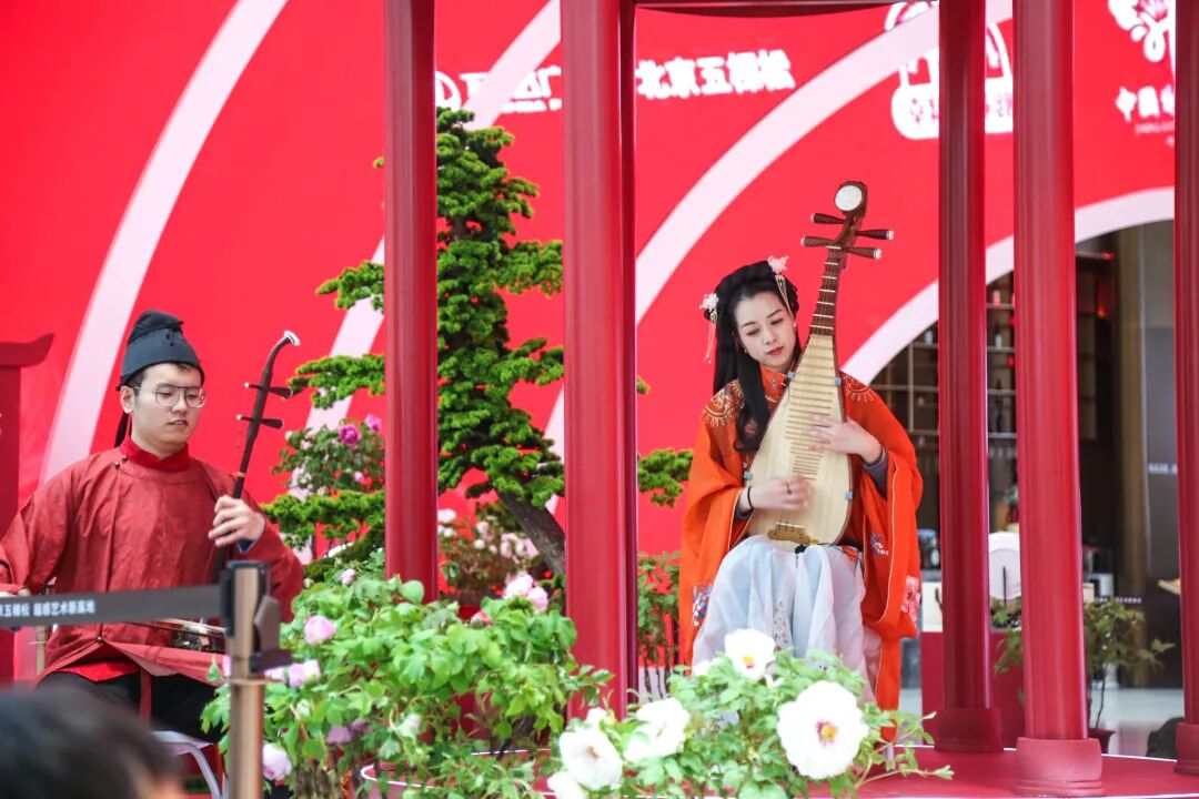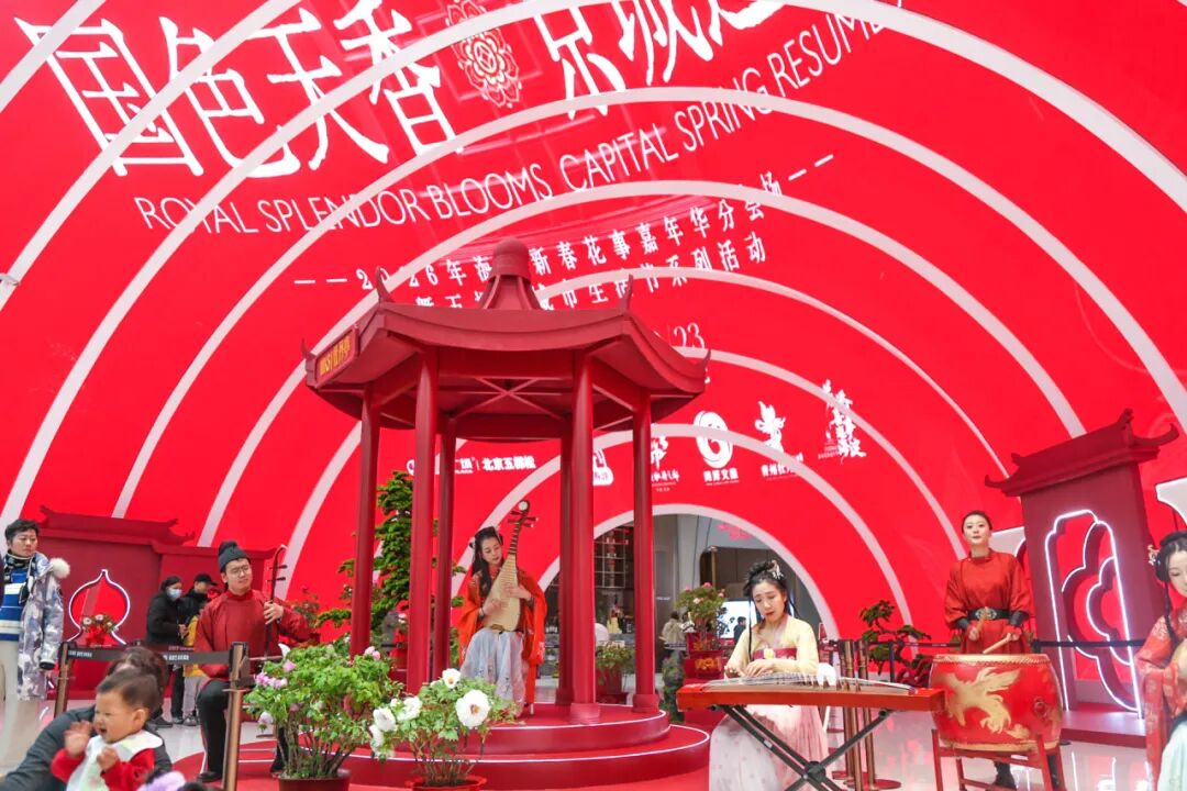 现场设计融入古典园林“移步换景”理念,蜿蜒小径、太湖石与月洞门巧妙区隔,模糊了商业与文化的边界。游客可在此赏花、听讲、选购年宵花与牡丹文创,甚至偶遇身着汉服的同好,时空交错之感油然而生。