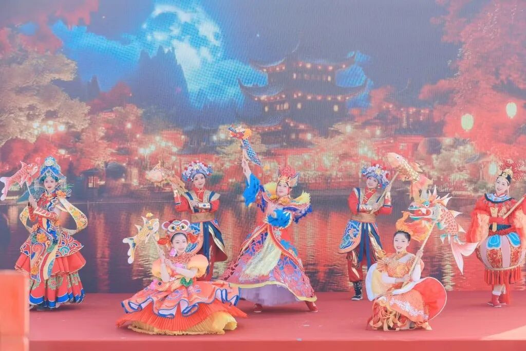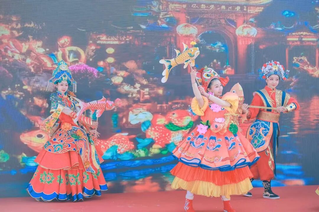 随着音乐响起,开场节目《灯韵华章》率先登台。舞者将剪纸、灯笼、年画、糖画、掐丝珐琅、戏曲六大非遗元素化作流动的画面,让观众沉浸式体验非遗之美及传统年俗的魅力,也为灶王爷民俗文化专场活动拉开序幕。