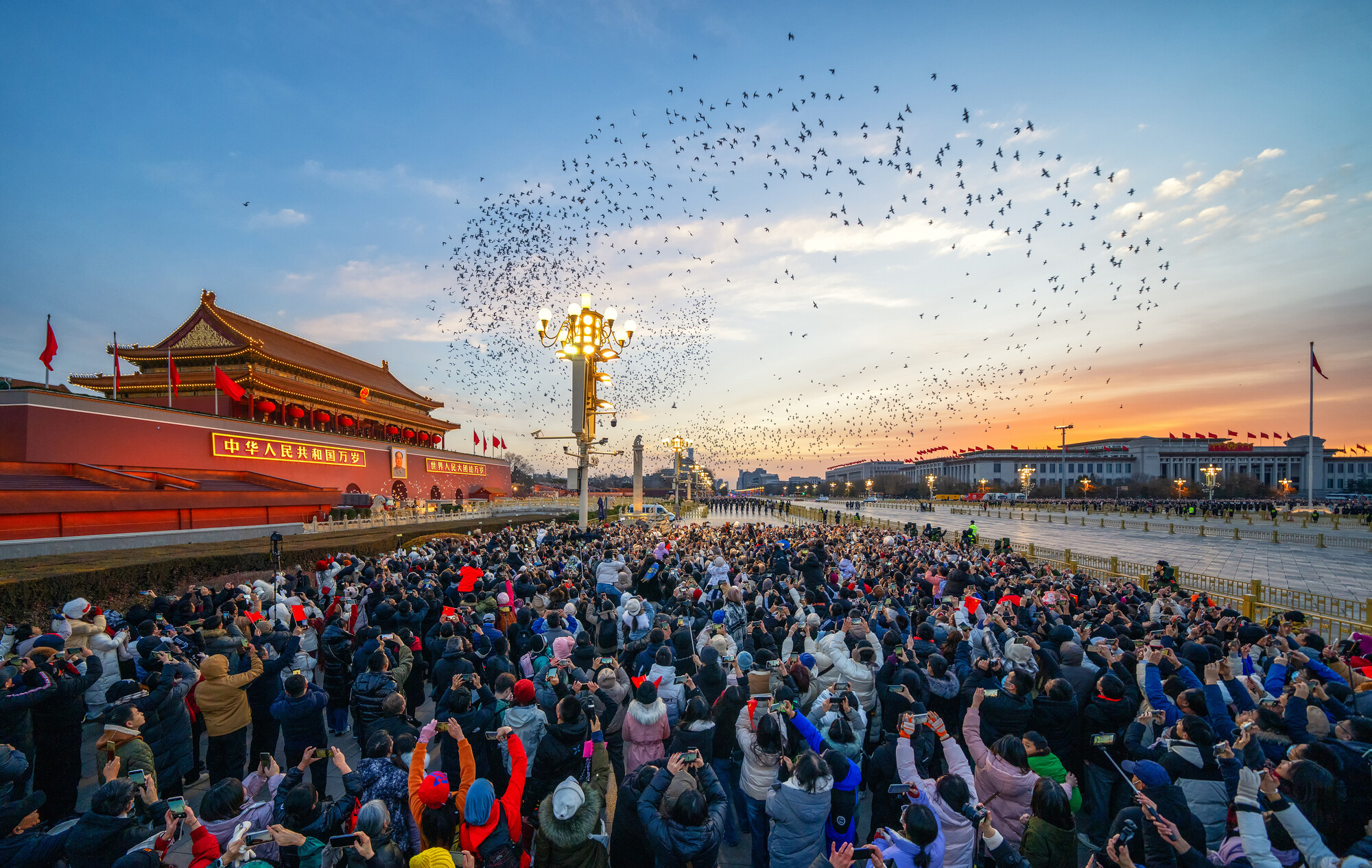 市民游客齐聚天安门广场,共同见证五星红旗冉冉升起的庄严时刻。 赵瑞摄
