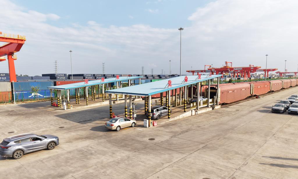 中铁特货广州分公司安全员廖泽龙告诉记者,公司会依据标准清单,对每辆托运的汽车进行全方位检查,核对型号、车架号、外观划痕,经过驾驶装载、加固锁定、终检与封签等程序,完成装车流程。