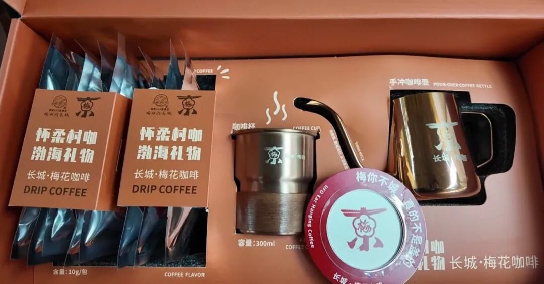 除了传统特色伴手礼,贴合年轻人消费喜好的咖啡礼盒凭借新颖创意为怀柔伴手礼注入年轻活力。在响水湖长城梅花节现场,“怀柔村咖”礼盒吸引了不少游客的注意。
