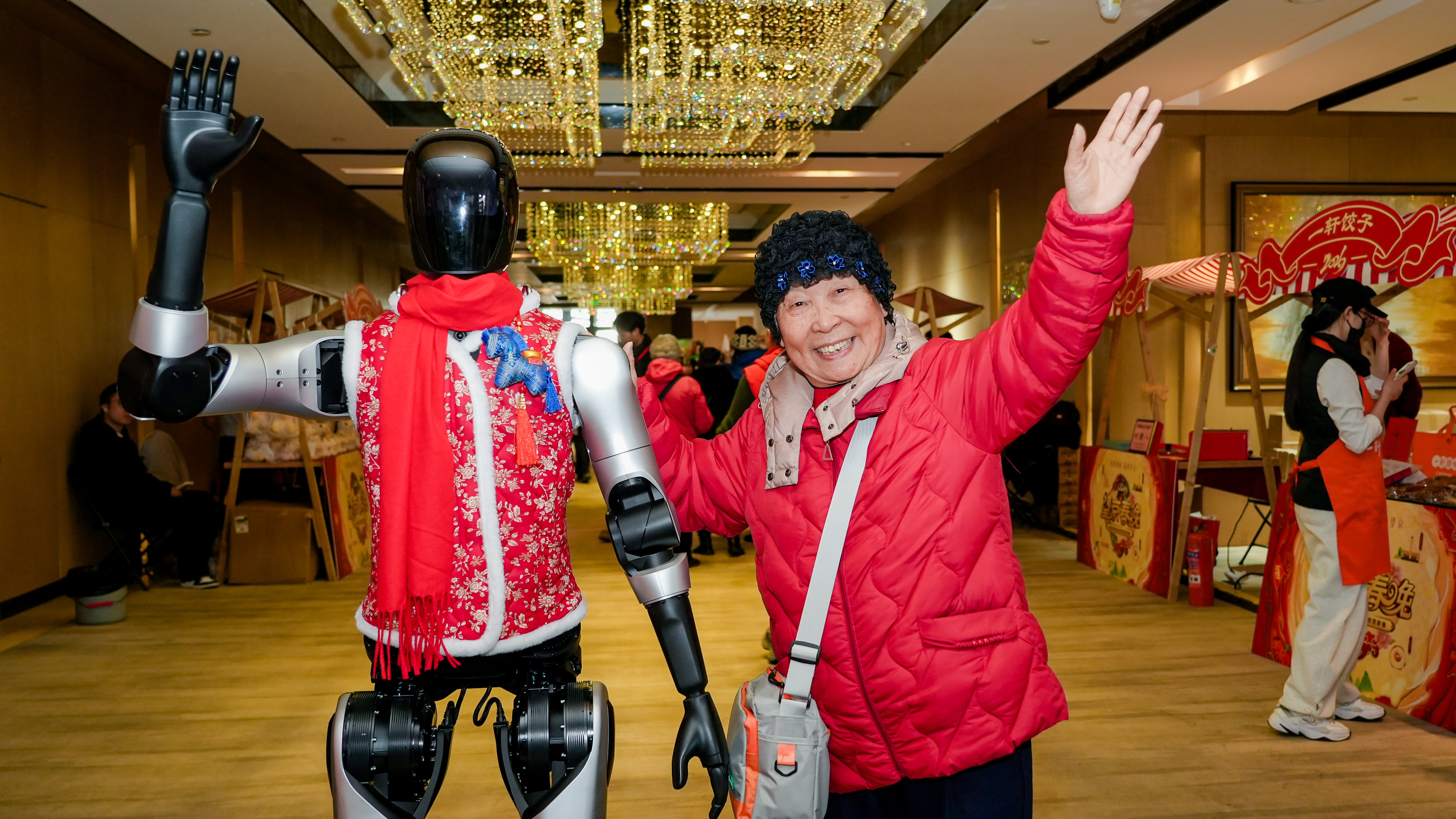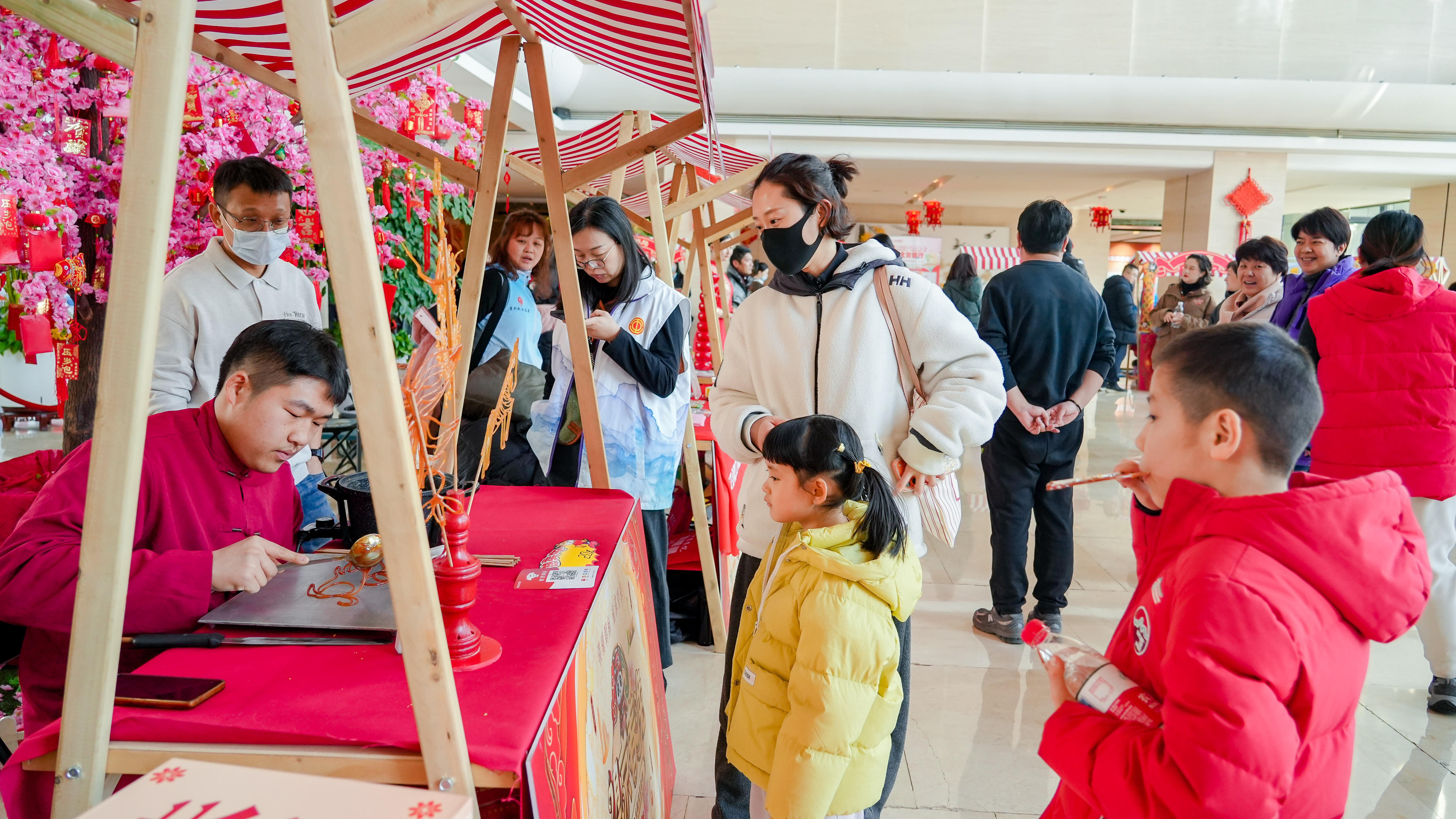 与主会场演出同步举办的“春彩望京”新春市集同样热闹非凡。20家企业齐聚现场,不少居民在市集上采买年货。市集里既有捏面人、糖画等非遗民俗体验,也有人工智能互动等科技项目,让居民在逛吃玩乐中感受浓浓年味儿。