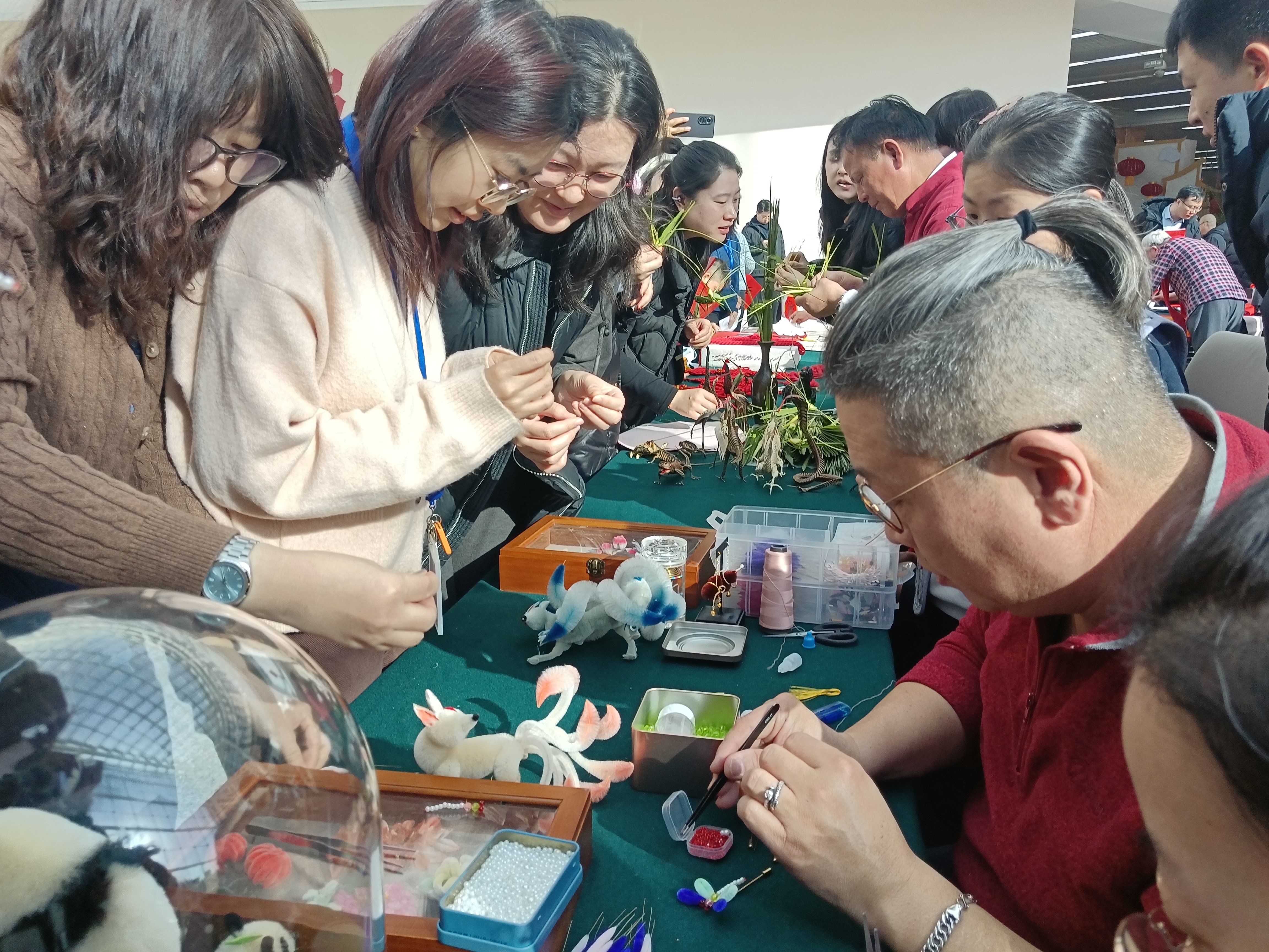 二十多年来,蔡志伟为绒制品项目的推广与传承做了大量工作,也是新春庙会、展会上的常客。不过近几年由于工作室业务繁忙,他仅在2024年参加了一次龙潭庙会。考虑到今年的大都新春庙会是行业协会组织,又在室内比较温暖,他便再次决定参加。