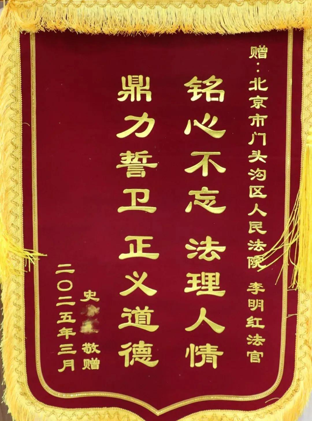不久后,一面写着“铭心不忘法理人情 鼎力誓卫正义道德”的锦旗与一封感谢信送至法院。史女士激动地对李明红法官与凌志颖助理说:“你们是我人生至暗时刻的一道光。”
