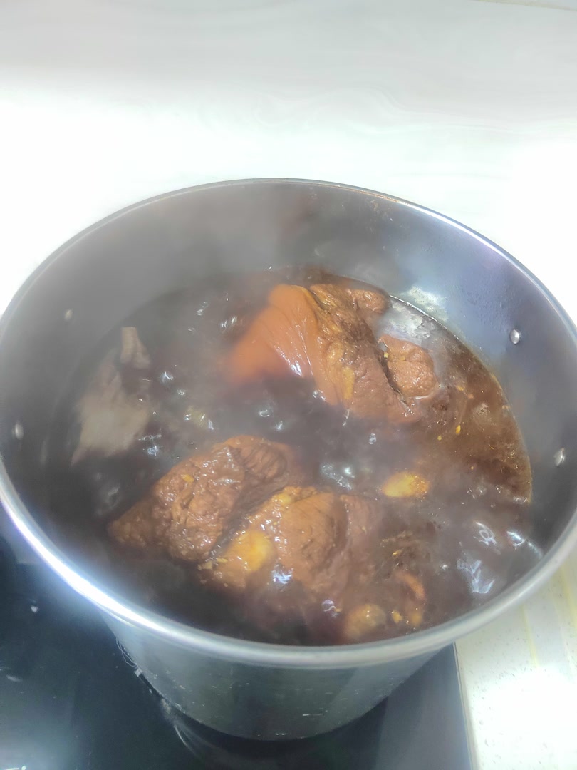 做完肘子后,李惠兰会撇去汤底浮沫,留一升的汤汁放到冰箱内保存,这卤汤里藏着五十年的时光。每一年,汤汁都更醇厚,像一本越写越厚的家族史书。这些年来,汤色渐深如琥珀,香气愈发沉稳内敛,咸鲜中透出微甜,回甘里裹着陈年酒香。每次掀盖,热气氤氲,仿佛掀开一页泛黄家谱——那气味是时间熬出来的信物,是两代人手掌的温度与守候,静静发酵。
