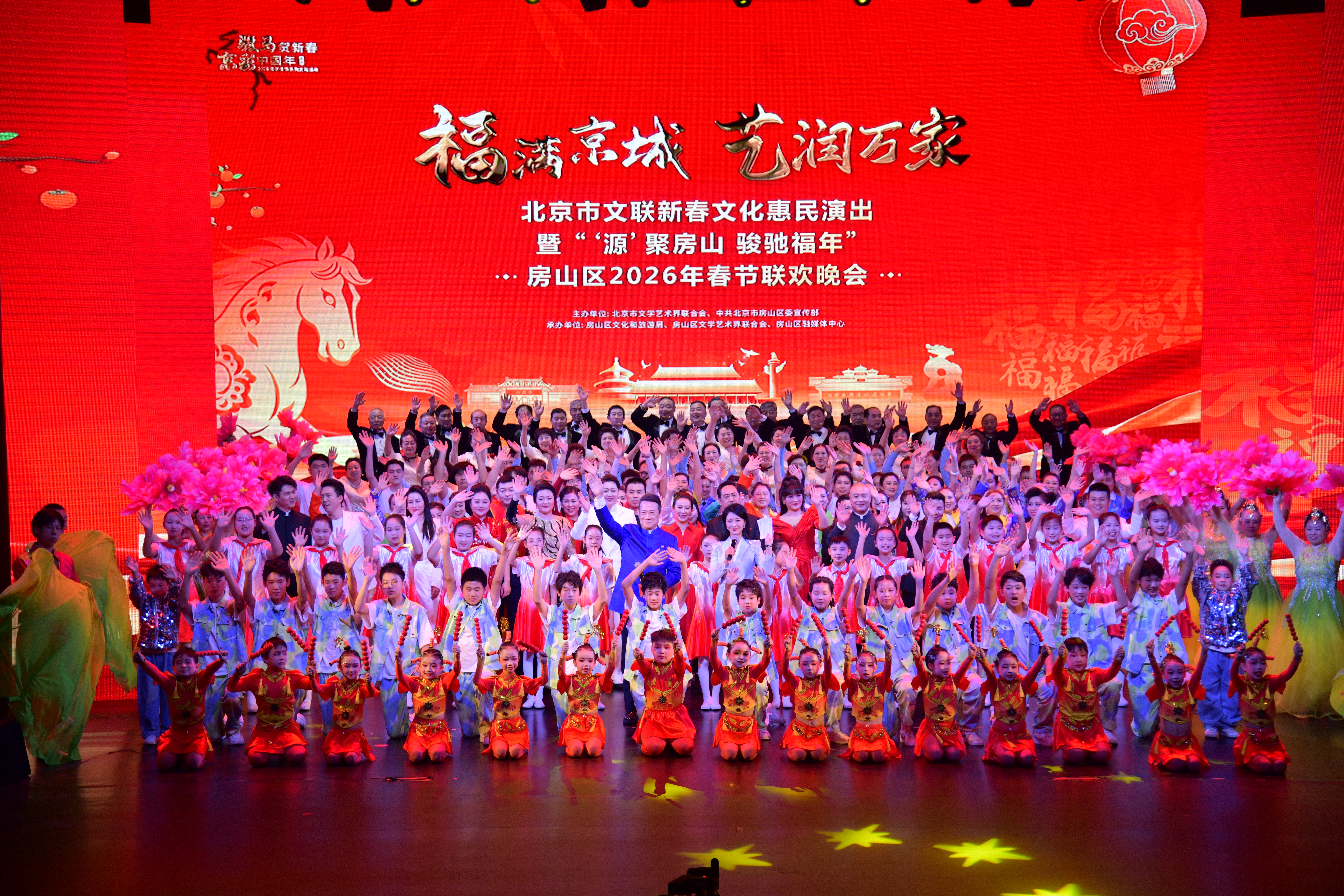 “福满京城 艺润万家”北京市文联新春文化惠民演出暨“‘源’聚房山 骏驰福年”房山区2026年春节联欢晚会,日前在房山区文化活动中心梦想剧场隆重举行。应宁、王玥波、刘劲、冯金伟、马佳、蒋宁等北京文艺名家亮相晚会,与现场观众一起新春联欢。