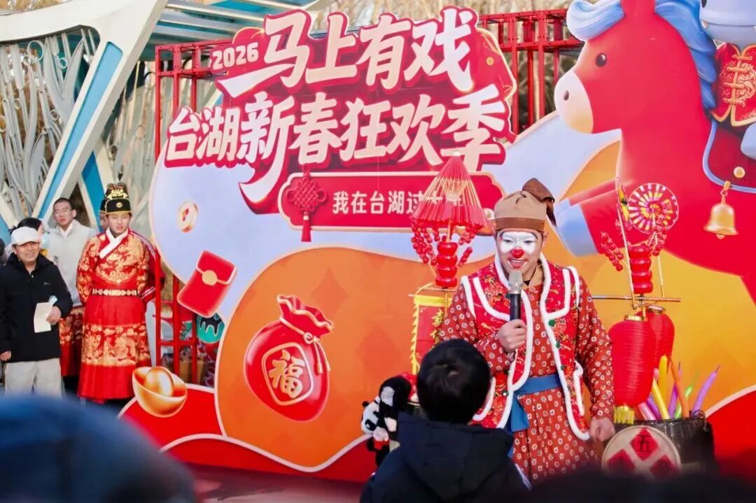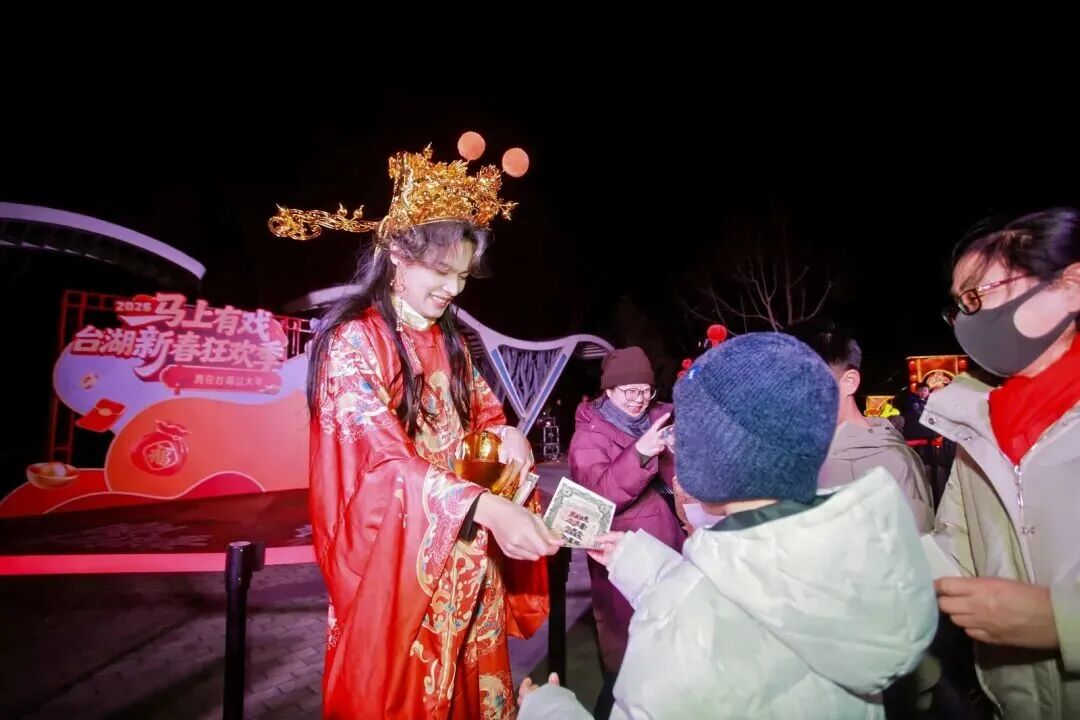 灯火璀璨、人声暖意交融,台湖新春狂欢季打破传统演艺边界,将台湖公园全域打造成开放型无界剧场,为市民游客送上新春祝福。