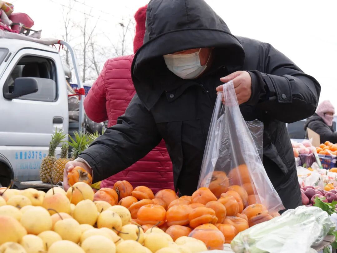 “您看看,咱这可是纯手工摇的。”元宵摊主杨红波手上的簸箩转得飞快,雪白的元宵在里面滚来滚去,逐渐变得圆润饱满。黑芝麻馅、山楂馅、五仁馅,还有水果馅,就等着除夕夜在一碗热汤里团圆。不管是走亲访友的伴手礼,还是自家团圆饭的食材,在大集上一站式就能购齐,省心又尽兴。