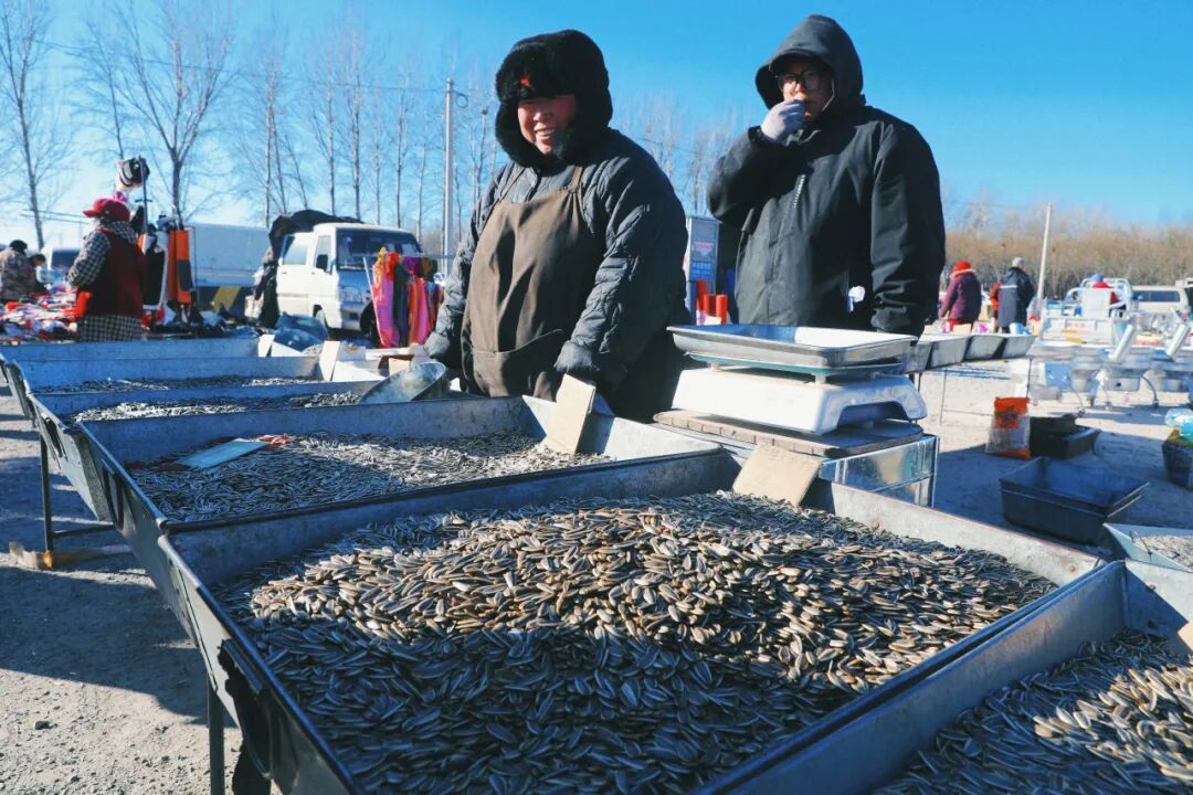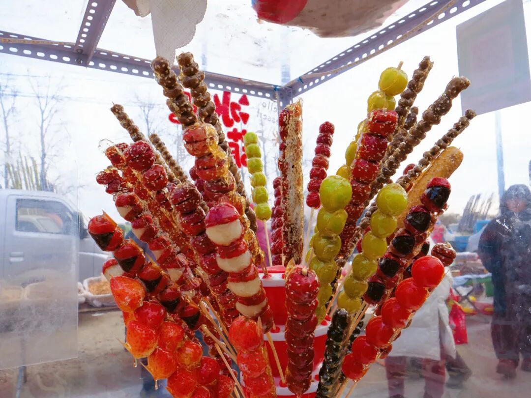 大集里简直是年货的“宝藏”海洋。码得整整齐齐的本地果蔬,还带着泥土的清新;一串串晶莹剔透的糖葫芦,是孩子们无法抗拒的甜蜜诱惑。干货炒货摊前最是热闹,瓜子、花生、开心果……每样抓上一点,才是看春晚的“标配”。