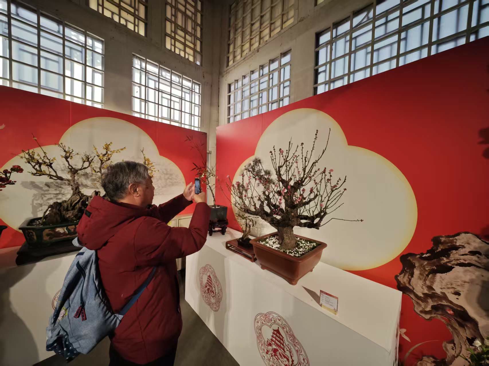 十间房展区以三组创新作品引人注目。15米长卷《百骏图》以梅、兰、菊、松等传统花木为元素,融入百骏奔腾意象,寓意国运昌隆;《踏雪寻梅》长卷则通过诗画交融,再现冬日御苑寻梅雅趣。尤为值得一提的是,《水木自亲 美美与共》突破传统陈展方式,采用悬浮式造景手法,将山水、梅意与建筑肌理融为一体,营造出春暖花开、万象更新的灵动意境。