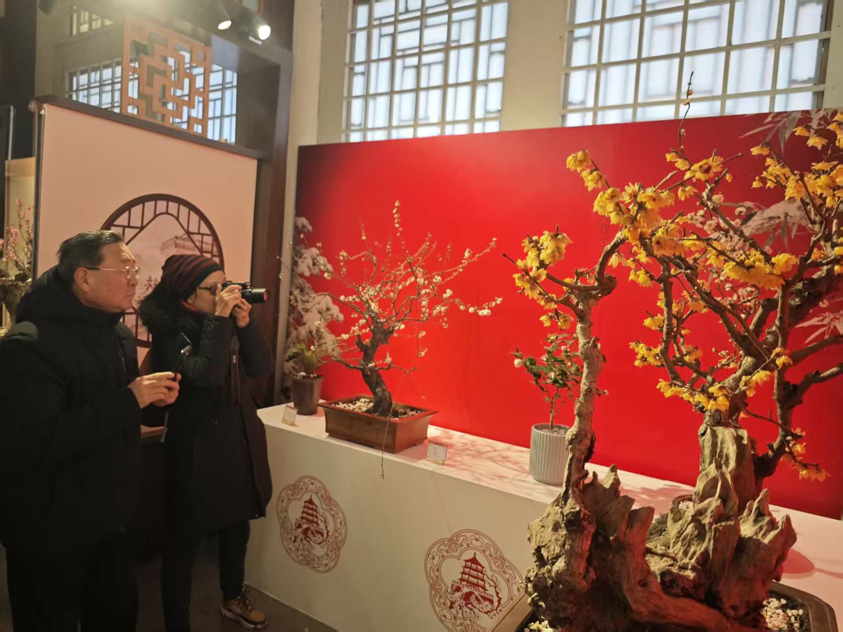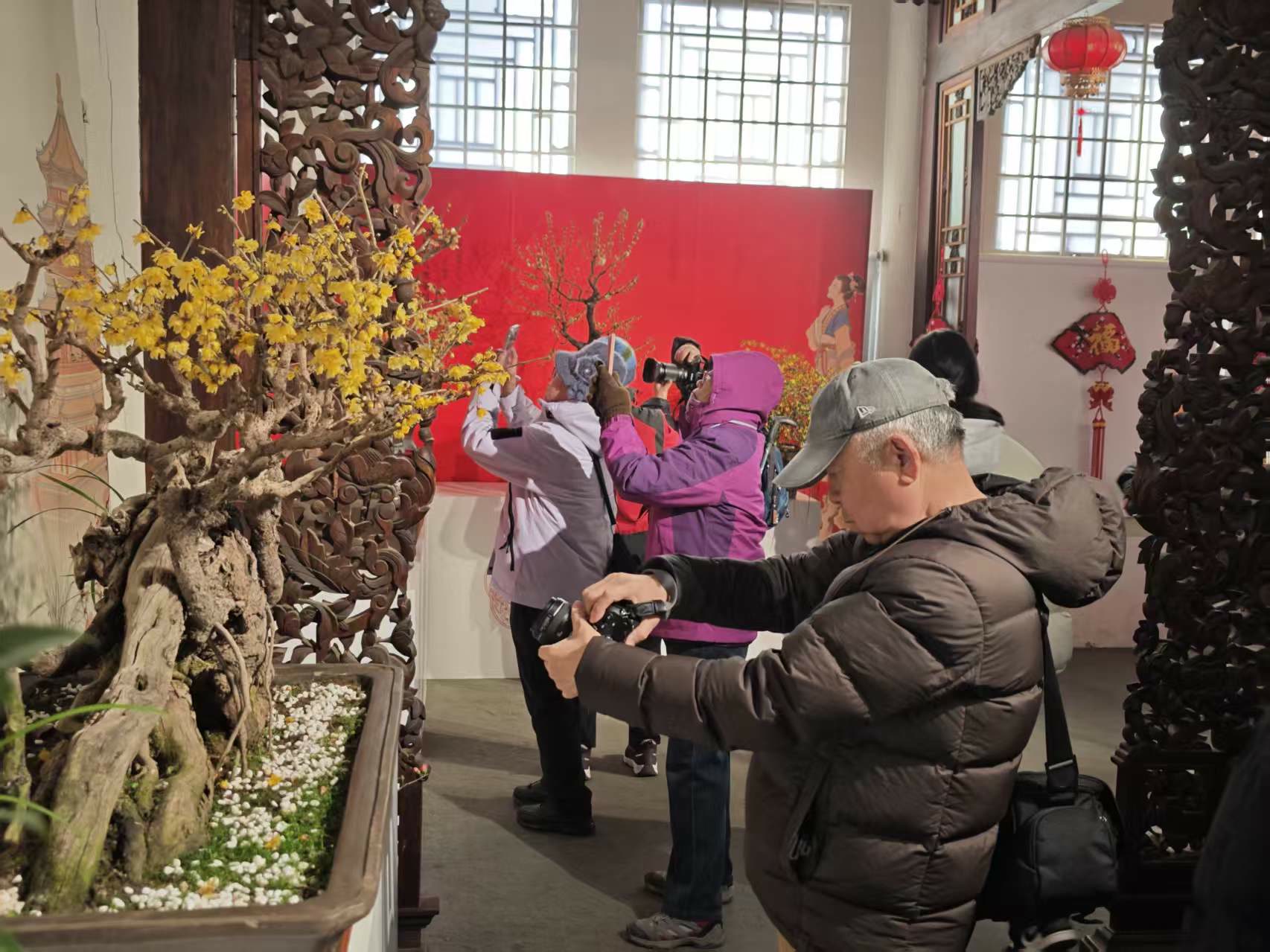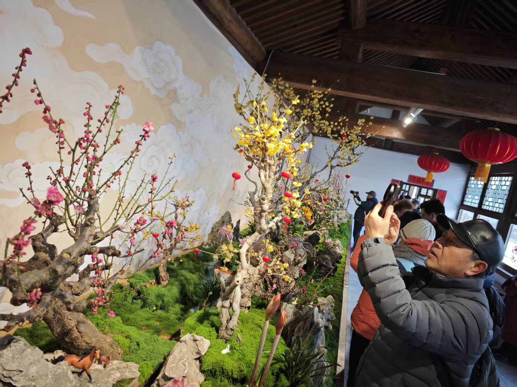 在水村居、特色商铺等点位,布置梅花、蜡梅及年宵花;同时推出“寻梅打卡地图”趣味寻梅活动,把全园梅花、蜡梅景观串联起来,让游客实现沉浸式游园、全域式赏梅。
