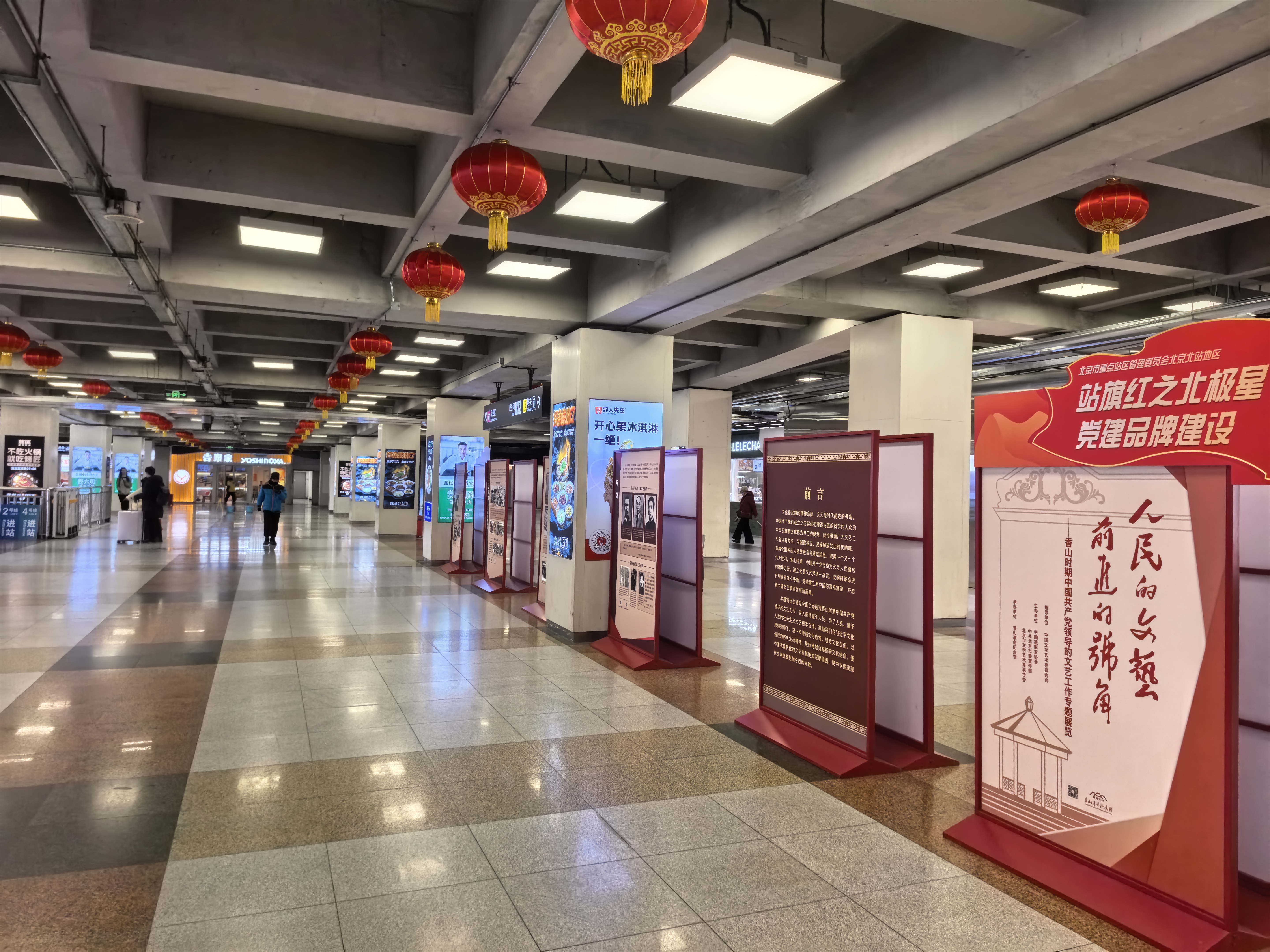 北京北站下沉广场,市重点站区管委会北站办与香山革命纪念馆联合推出的红色专题展览,以图文史料与场景复原形式,再现党领导文艺事业的光辉历程。候车间隙,往来旅客驻足凝神,沉浸式感受红色文化的时代温度。清河站内专题巡展,以翔实档案呈现以毛泽东同志为核心的中共中央在香山指挥解放全中国、筹建新政协、搭建新中国“四梁八柱”的峥嵘岁月。