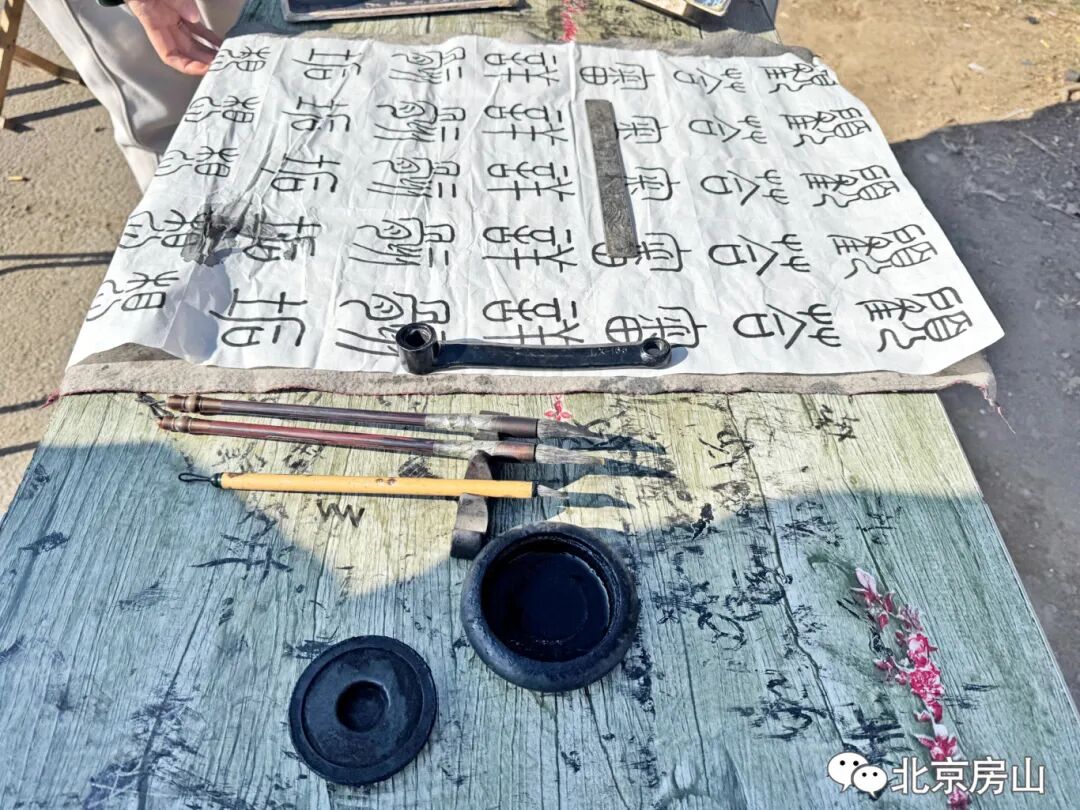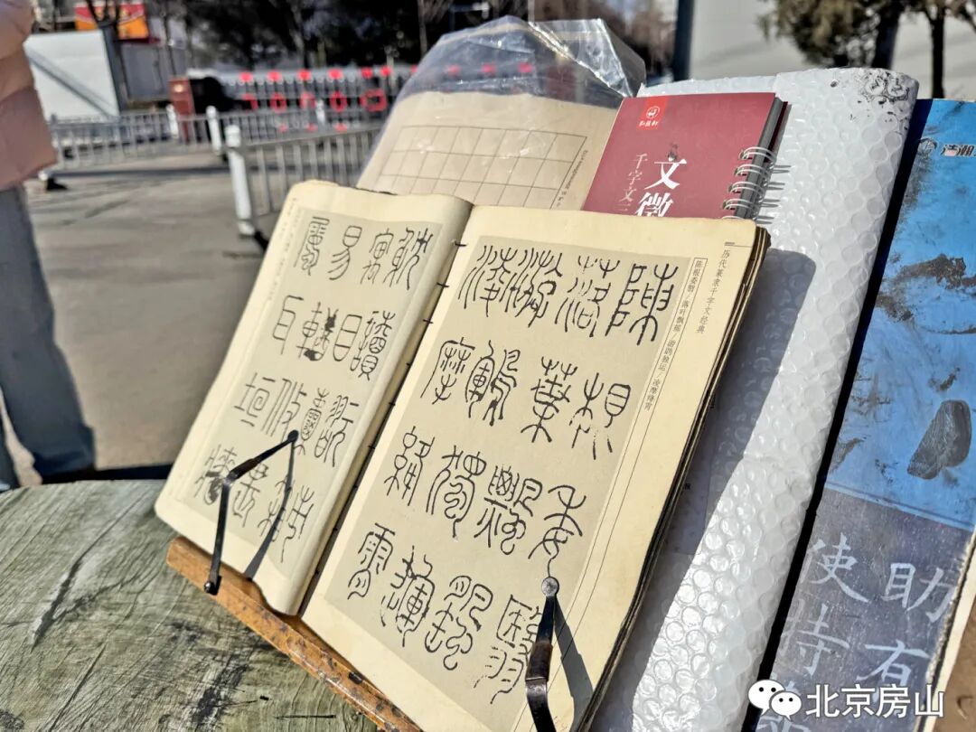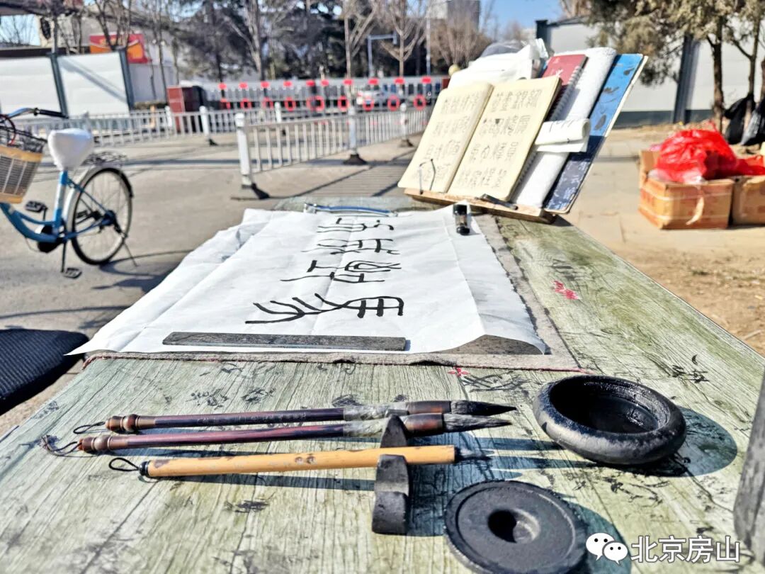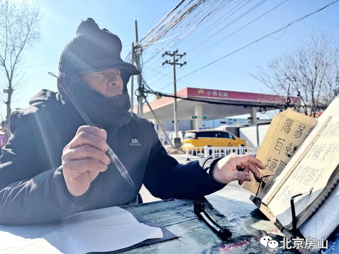 腊月的风吹过良乡南关桥头,路边一个修车摊飘出淡淡的墨香。修车师傅李克泉的“露天书房”就支在摊旁,一张摇晃的折叠桌,铺着宣纸,摆着笔墨。