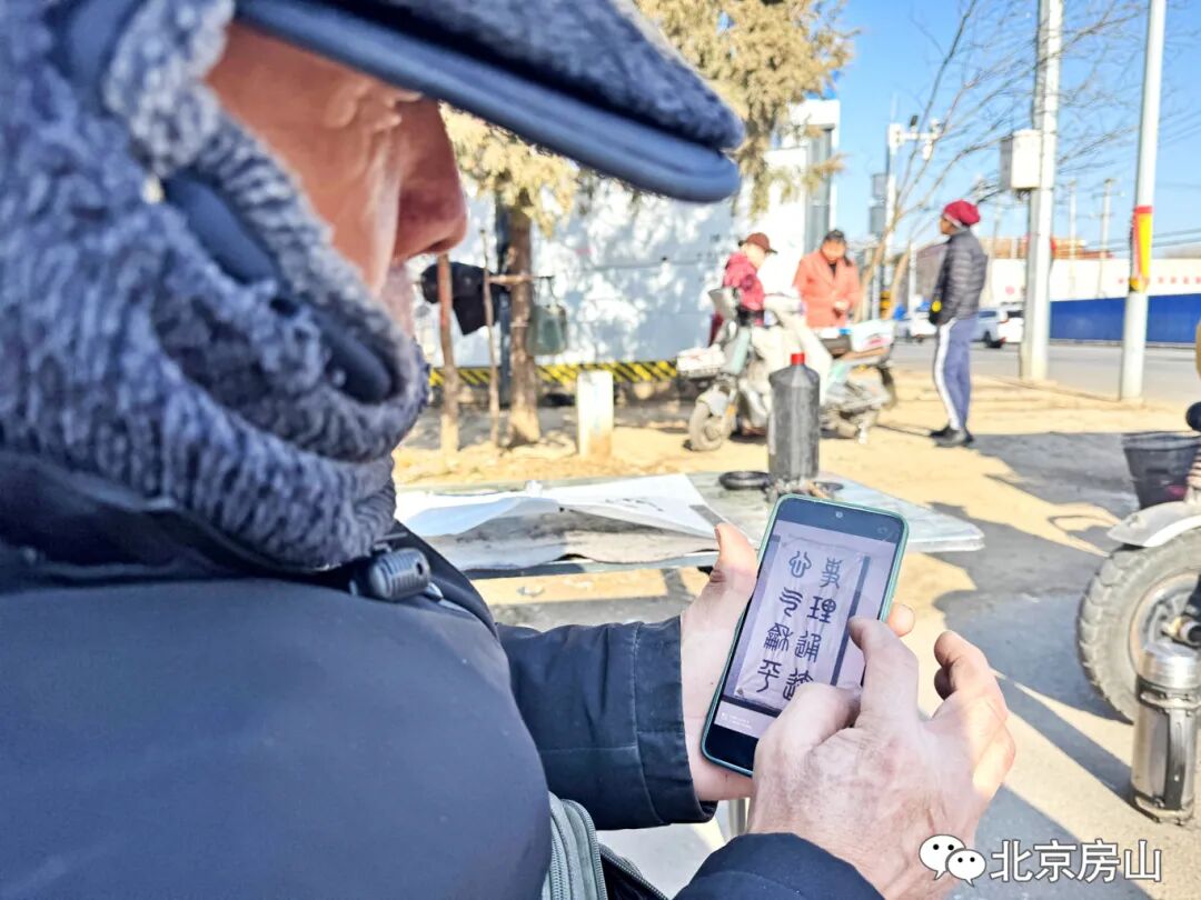 扎根房山的这些年,李克泉的书法功底在日复一日的练习中愈发扎实。如今在这一片,不少人都知道有个“修车工书法家”。有人来求字,他从不推辞。隔壁理发摊的招牌,就出自他手。“写字让人静心,对身体也好。给邻居写个招牌,自己开心,别人也高兴。”他笑着说。笔墨不仅装点了节日,更融进了街巷的烟火日常,点亮了平凡的生活。