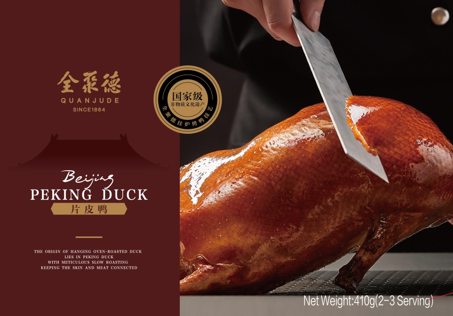 全聚德“手工片制烤鸭”是一款高度还原堂食体验的零售化产品,是全聚德“餐饮产品食品化”战略形成的重要成果。据介绍,该产品严格遵循国家级非遗“全聚德挂炉烤鸭技艺”,历经多年技术攻关,经果木明火烤制后,由传承人监制片鸭师傅手工片制,再通过低温冷冻锁鲜技术处理,最大限度保留挂炉烤鸭皮酥肉嫩、香气浓郁的正宗口感,配套饼、酱等经典配料,还原堂食般品质体验。