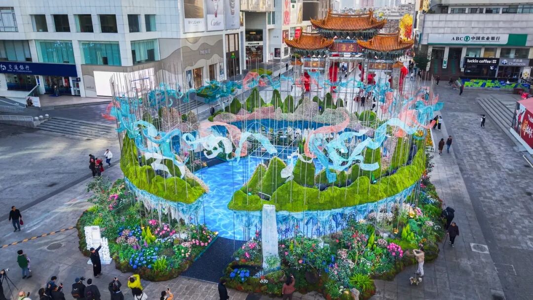 2月11日上午,五华区南屏步行街人头攒动,一座以“湖滨春城,山水花都”为主题的巨型立体花雕正式向市民开放,为春城昆明增添了一处集生态美学与城市文化于一体的新景观。