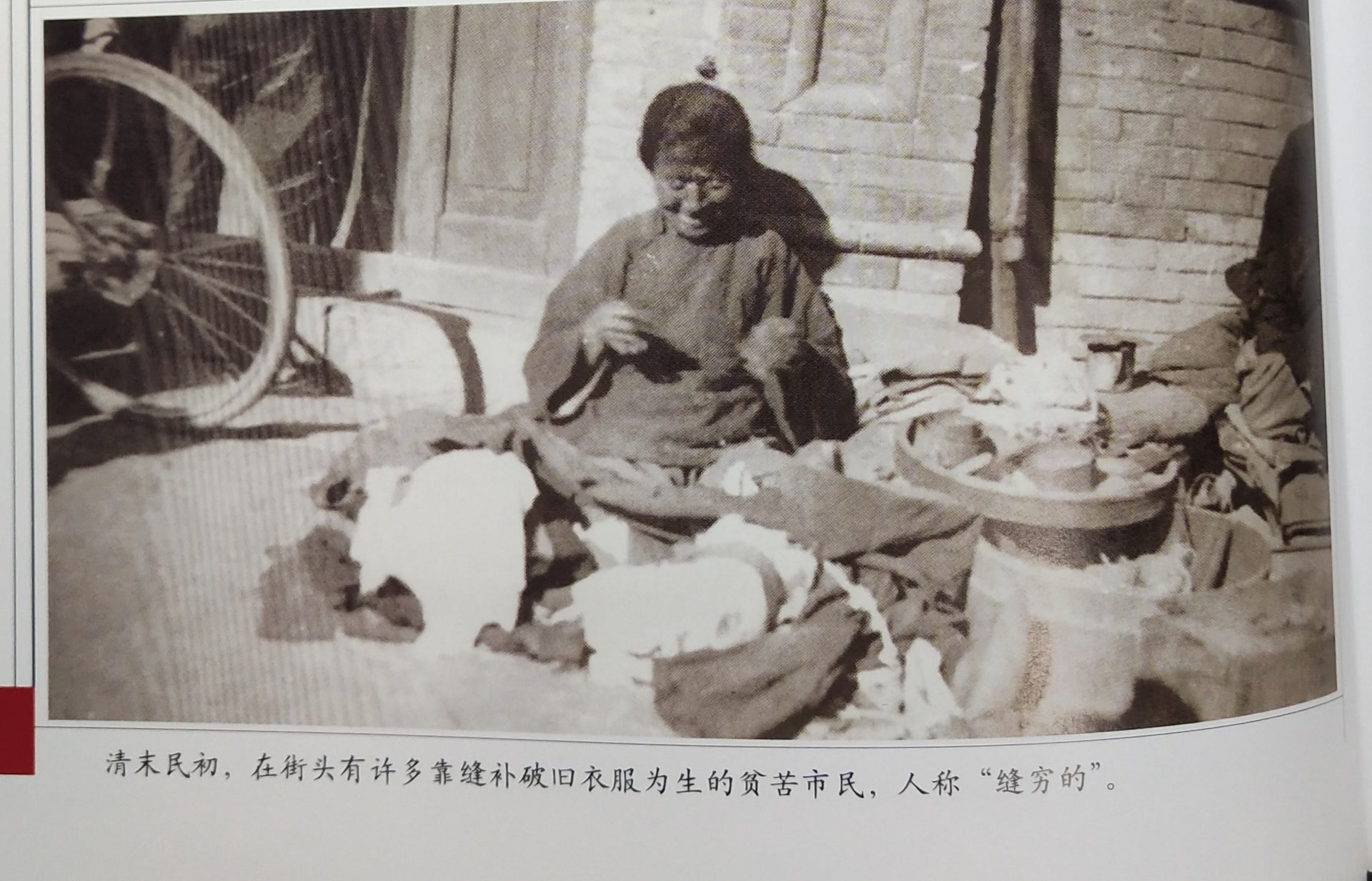 《北京风俗图》第30幅“拾破烂”图,画中一穿着破衣烂衫的穷人,左肩斜背着一个竹筐,右手拿着一个长的铁丝钩子。看到这幅“拾破烂”图,不禁勾起我童年的一段苦涩记忆。