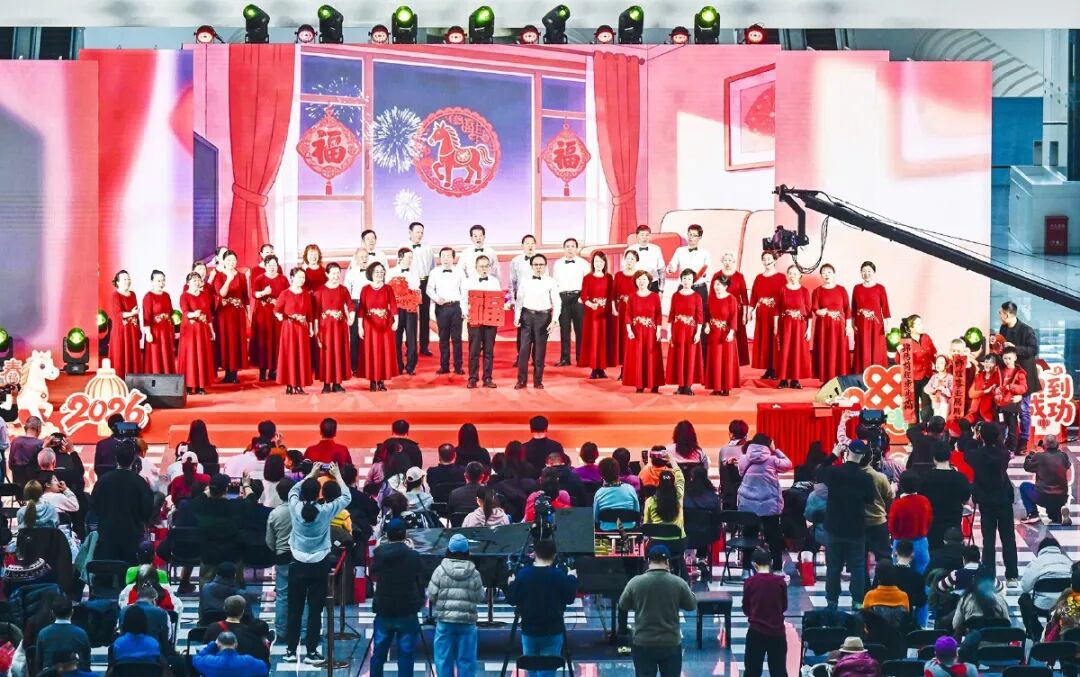 “ 马”上欢聚副中心·2026京津冀市民新春大联欢的开场舞狮《龙腾狮跃贺马年》瞬间点燃全场热情;歌曲《我在北京的胡同里长大》《快乐的天津人》和评剧《报花名》生动演绎了京津冀三地的人文风情。