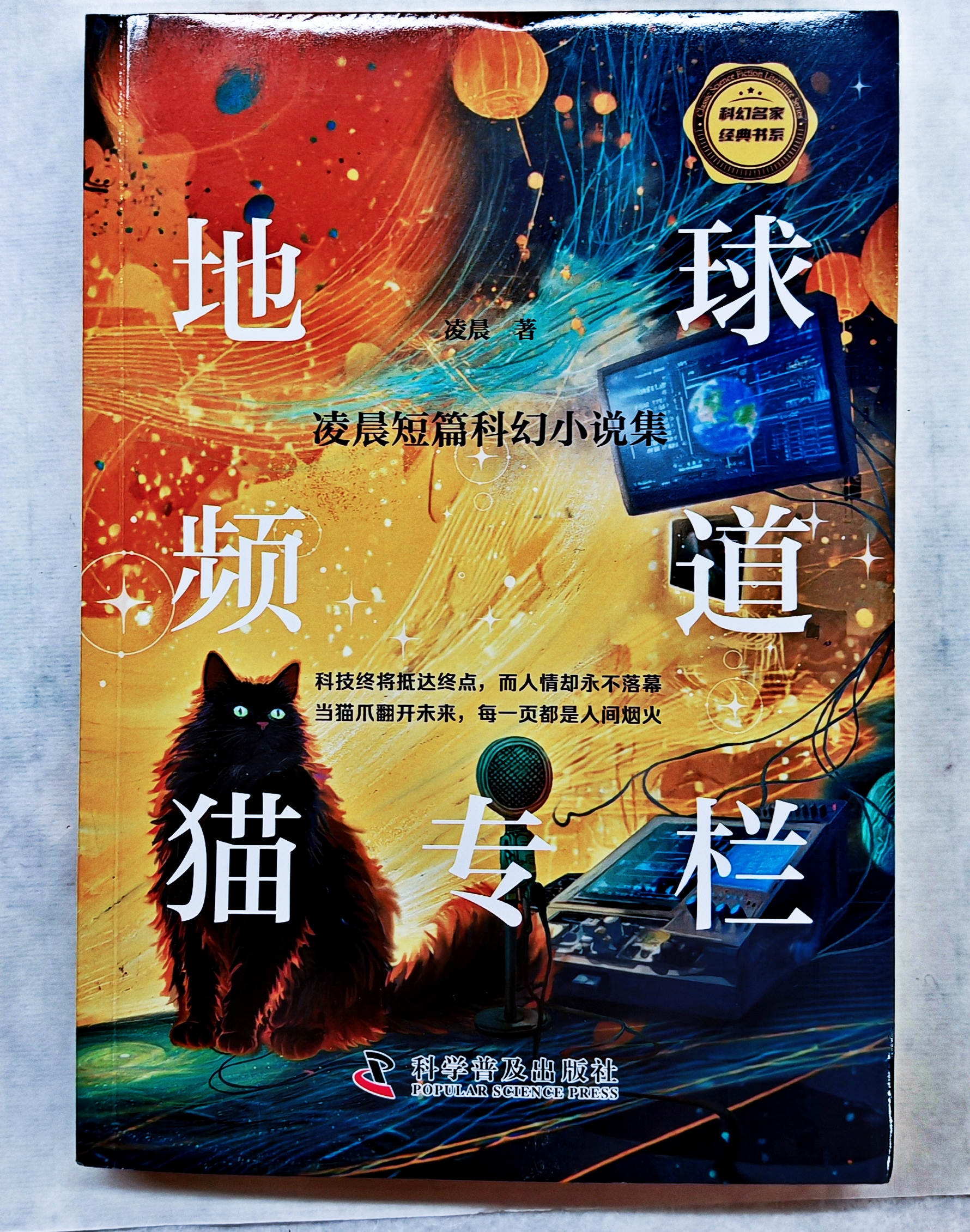 这是北京女作家凌晨最近出版的一本新书的标题:《地球频道猫专栏:凌晨短篇科幻小说集》。