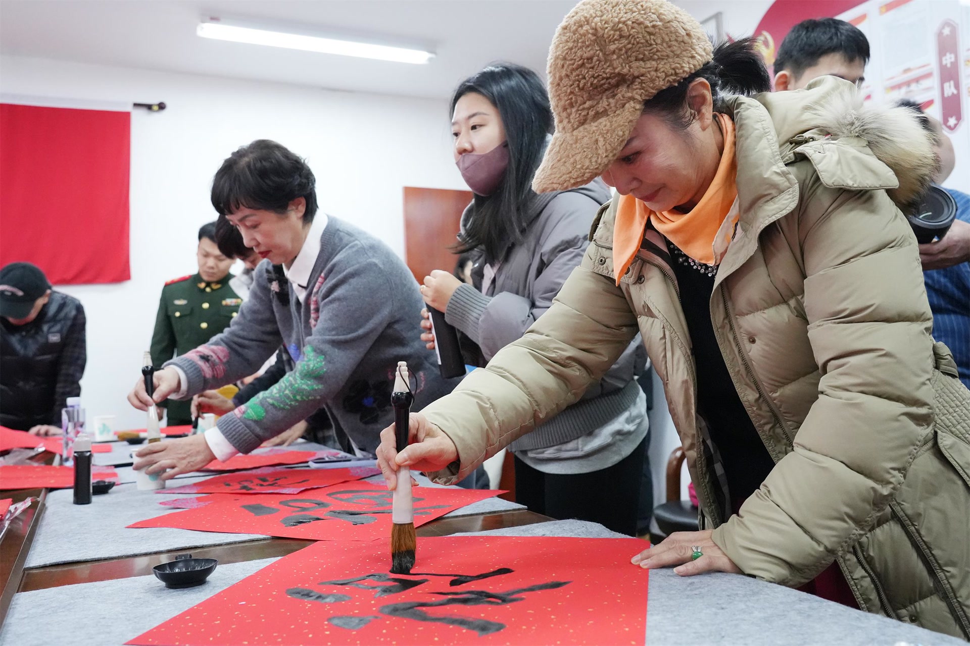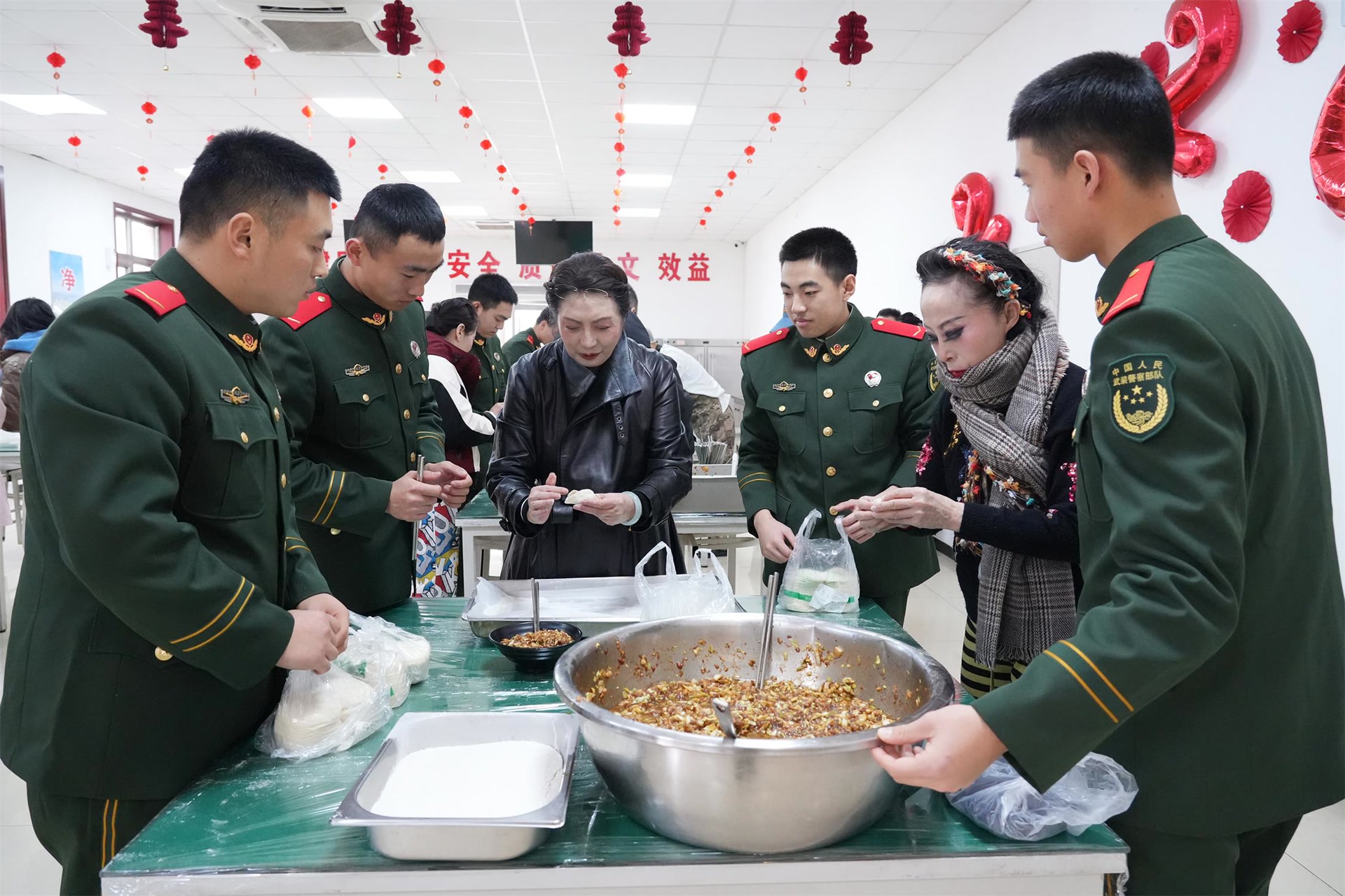 “共融·烟火暖军营”互动环节更显军民深情。退役军人书法爱好者与官兵们一同挥毫泼墨,一笔一画书写春联与“福”字,把新春祝福凝于笔端;大家还携手包饺子、话家常,热气腾腾的饺子氤氲着团圆的气息,也拉近了军民心与心的距离。随后,官兵们和慰问团参观部队荣誉室,回顾峥嵘岁月,汲取榜样力量,更加坚定了武警官兵守护一方安宁的使命担当。