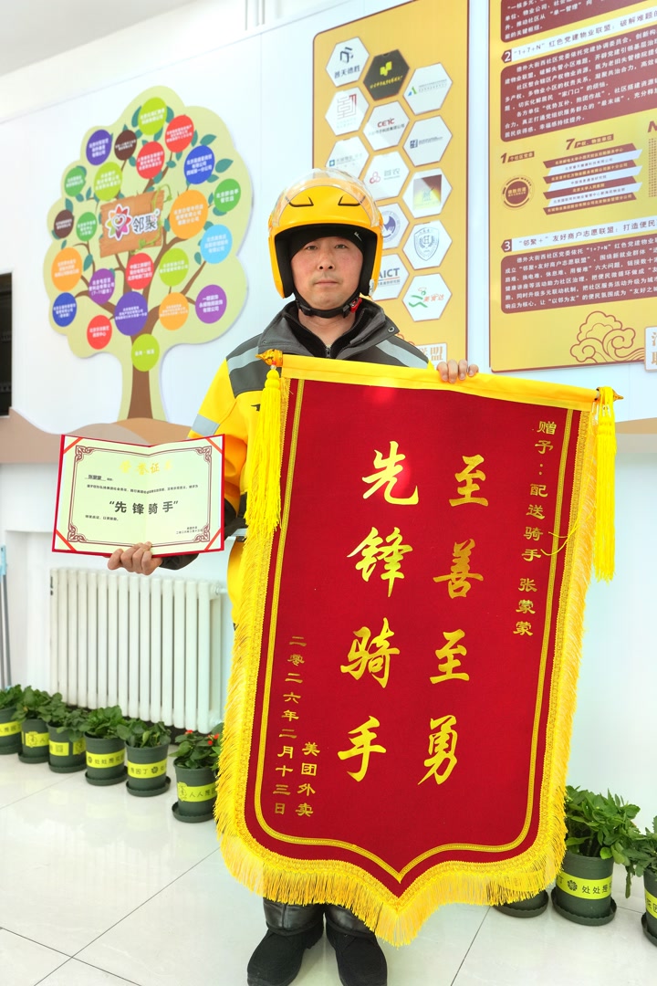 当天,西城区委社会工作部、德胜街道为张蒙蒙送来了慰问品。美团公司为张蒙蒙送来了锦旗、荣誉证书,站点公司也为他提供了2000元奖金。受到英雄般的礼遇,张蒙蒙有些受宠若惊。“街道给我们提供了骑手餐,已经解决了很大问题。”张蒙蒙有些不好意思地说。当问到生活中有什么困难时,张蒙蒙朴实地说,自己刚来北京,目前没有什么困难。
