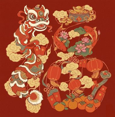 《醒狮纳福》把活泼的醒狮和传统的“福”字结合在一起,再配上锦鲤和元宝等吉祥元素,营造出热闹喜庆的氛围,祝愿大家新年福气满满。