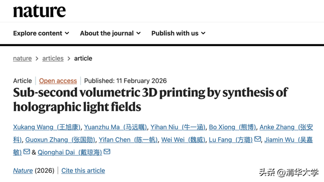 传统逐点、逐层三维打印技术虽能保障精度,但打印效率较低,毫米级物体往往需要数十分钟甚至数小时才能完成加工,难以适配实际科研与生产的需求。